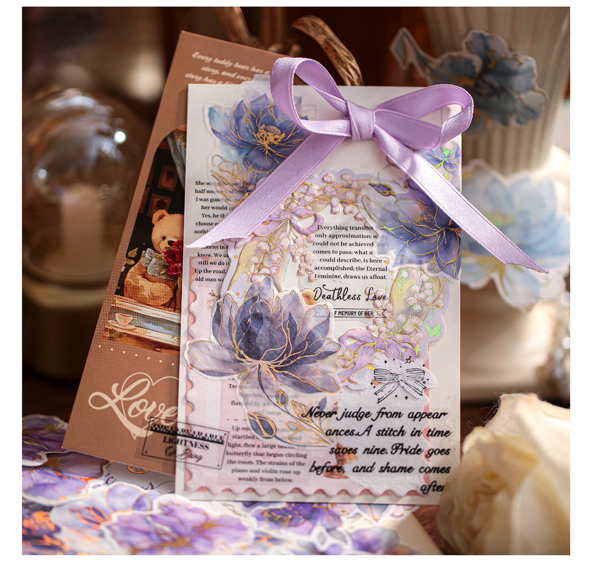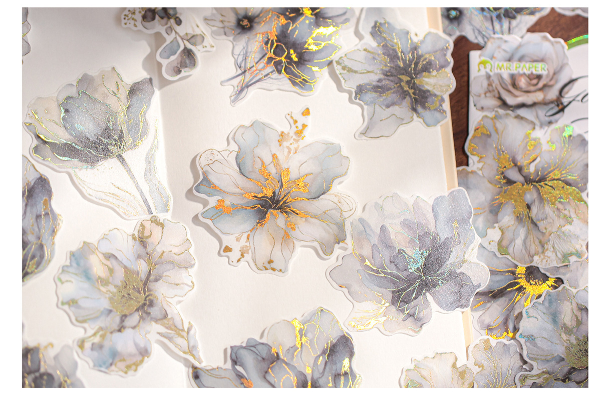 Mr. Paper 대형 스티커 팩 플로팅 꽃 금박 시리즈 복고풍 꽃 소재 핸드북 패키지 인사말 카드 diy 장식 스티커스토어 가기