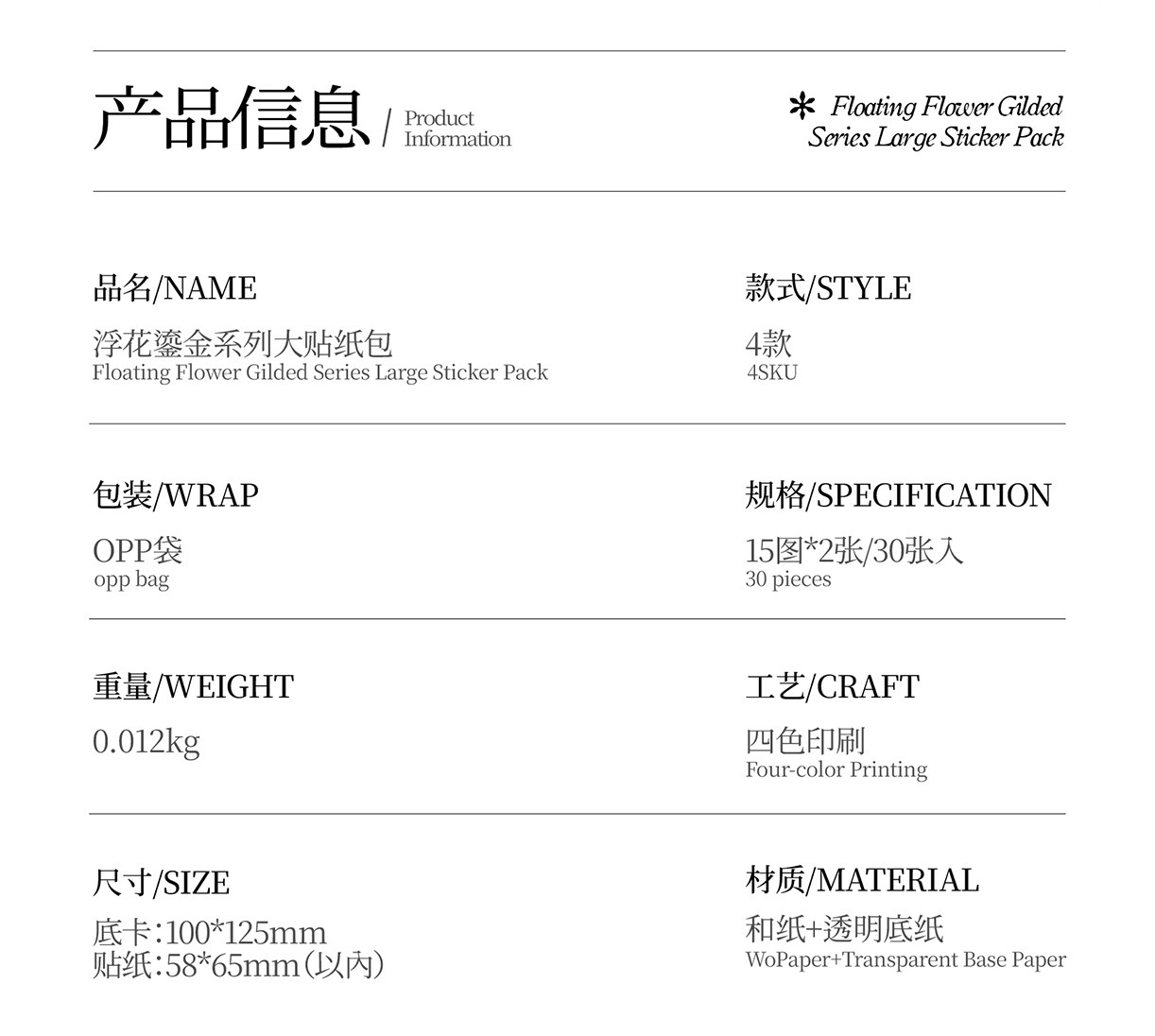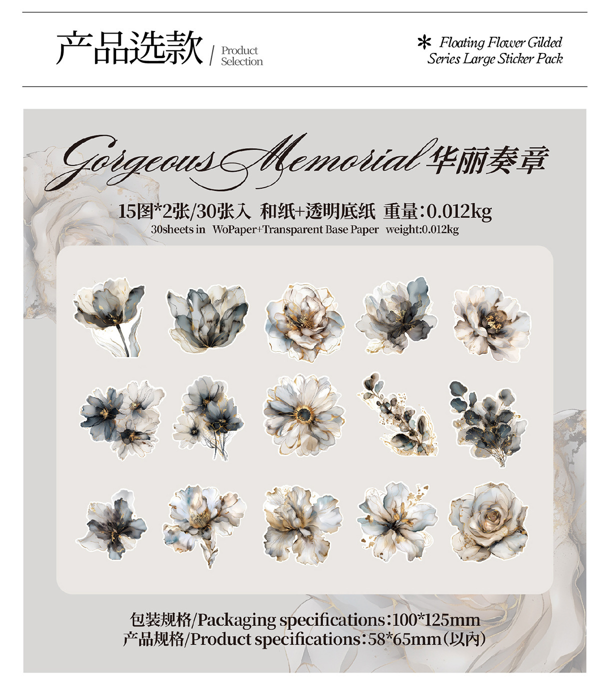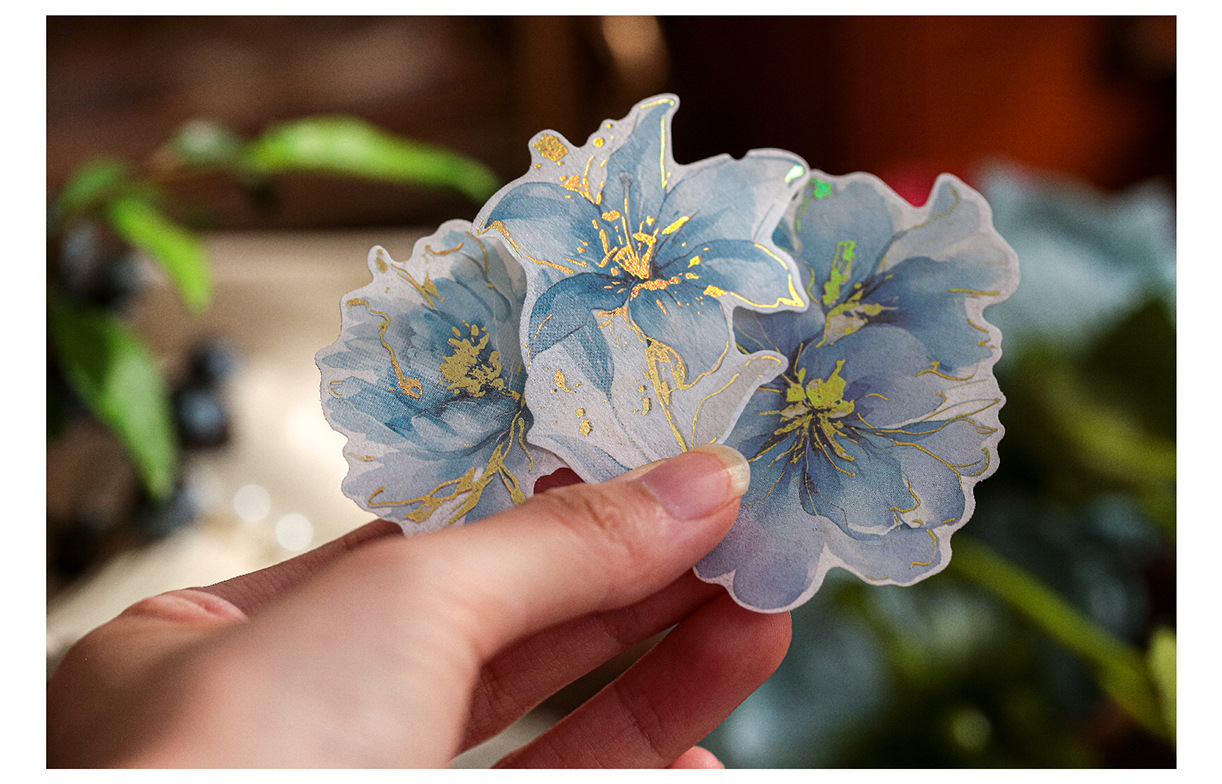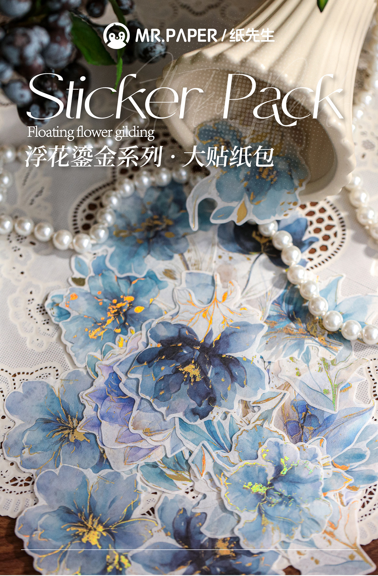Mr. Paper 대형 스티커 팩 플로팅 꽃 금박 시리즈 복고풍 꽃 소재 핸드북 패키지 인사말 카드 diy 장식 스티커