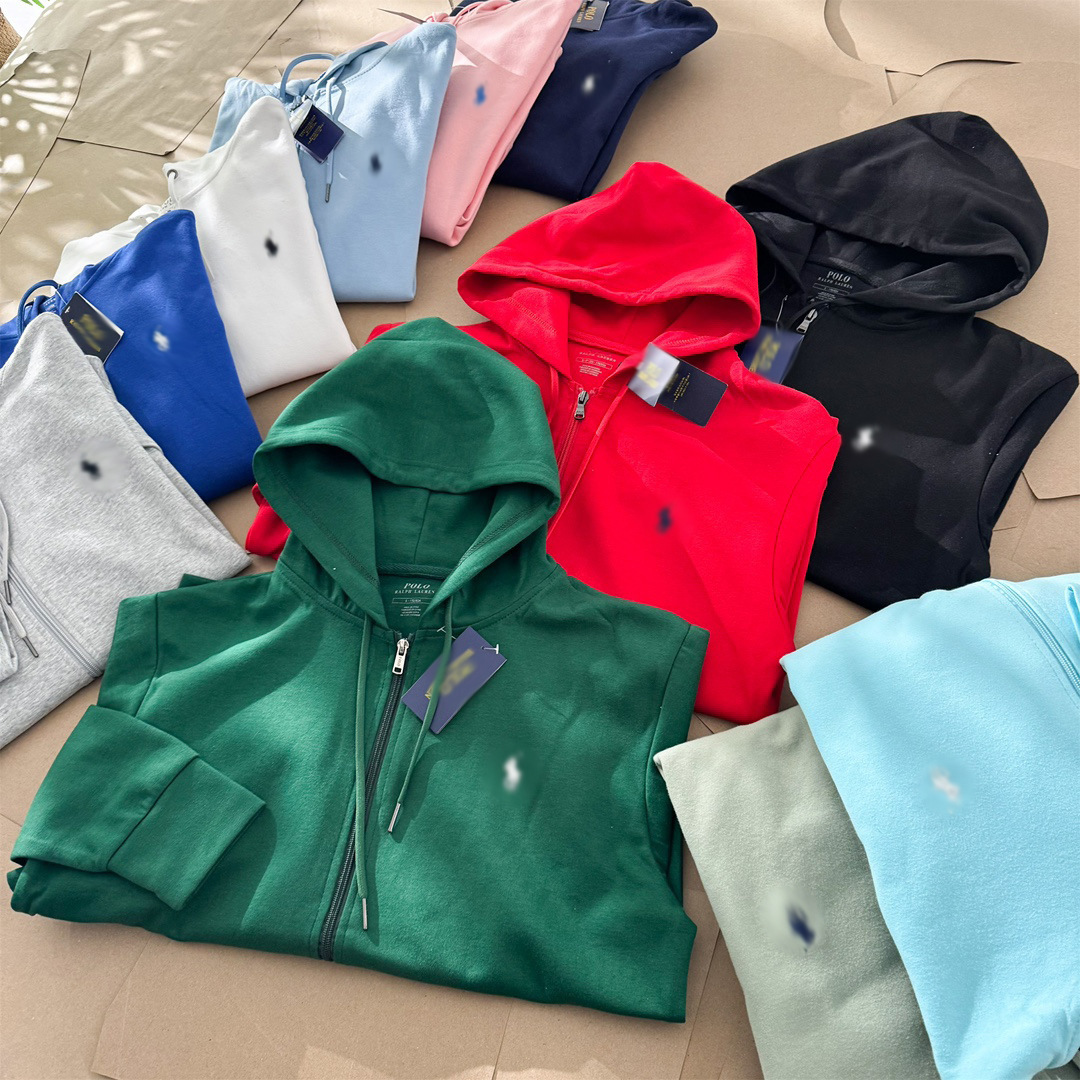 12 색 국경 간 RL 포니 자수 남성과 여성 솔리드 컬러 지퍼 카디건 후드 티셔츠 자켓 후드 트렌디 슈트스토어 가기