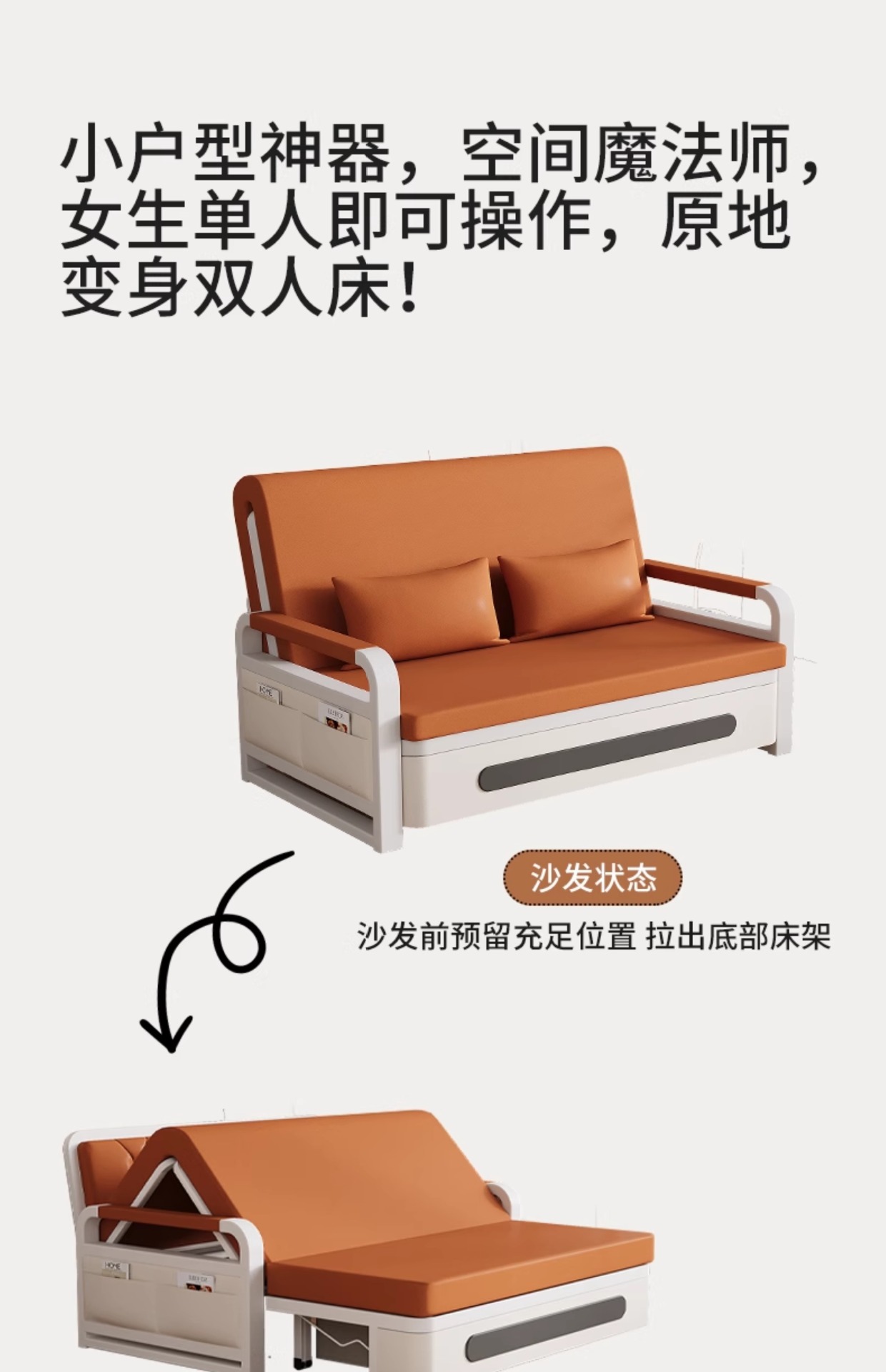 소파 베드 접이식 이중 목적 발코니 다기능 침대 소형 아파트 소파 2025 새로운 인터넷 연예인 더블 텔레스코픽 rω