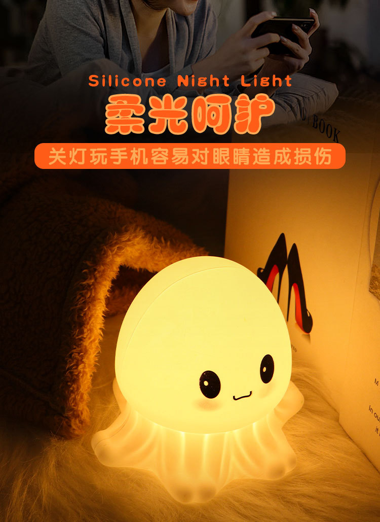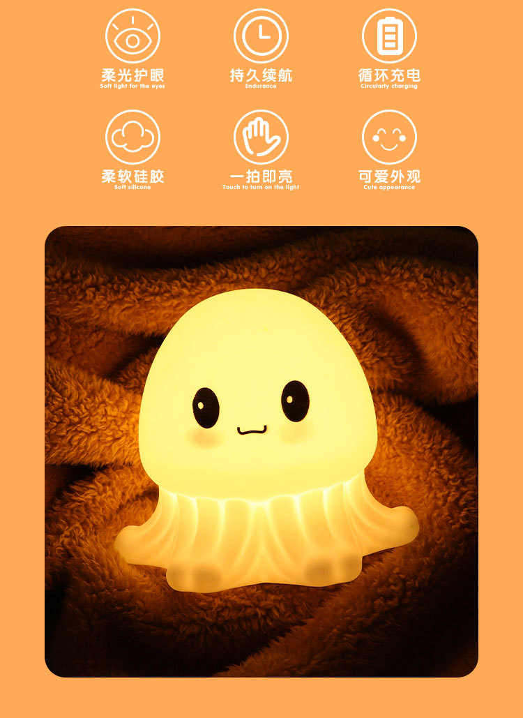 슈퍼 귀여운 해파리 야간 조명, 색상 변경 조명, 새로운 독특한 크로스보더 LED 야간 조명, 어린이를 위한 충전식 분위기 조명