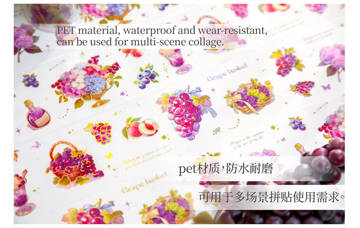 Mr. Paper PET 테이프 로맨틱 과일 파이 크리 에이 티브 과일 요소 어린이 핸드북 diy 조경 장식 콜라주