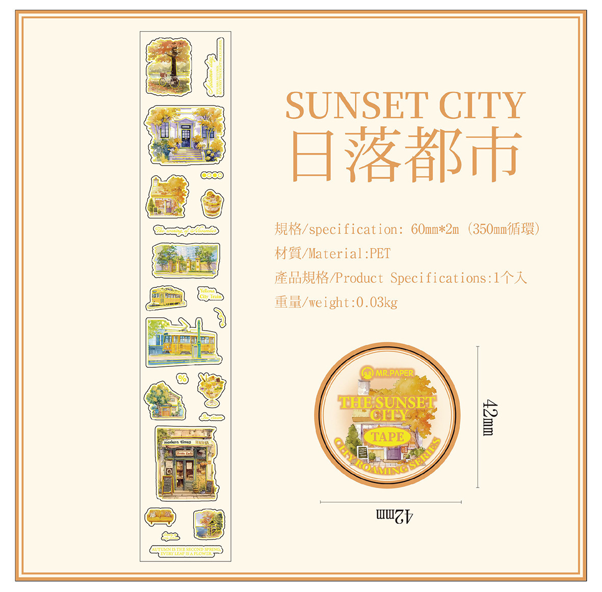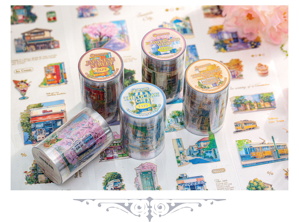 Mr. Paper PET 테이프 도시 루핑 시리즈 복고풍 장면 일러스트 방수 핸드북 DIY 조경 콜라주