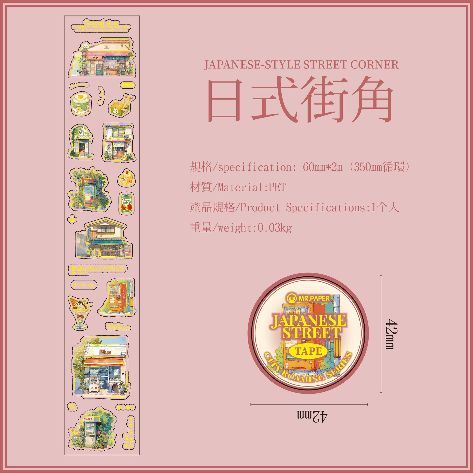 Mr. Paper PET 테이프 도시 루핑 시리즈 복고풍 장면 일러스트 방수 핸드북 DIY 조경 콜라주스토어 가기