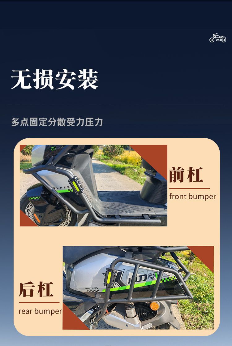 • [Xiaodao Qingfengxia] 페달이 포함된 전기 오토바이 버전 - 새로 업그레이드된 탄소강 앞 범퍼 + 뒷 범퍼(낙하 방지 블록 4개 포함)
