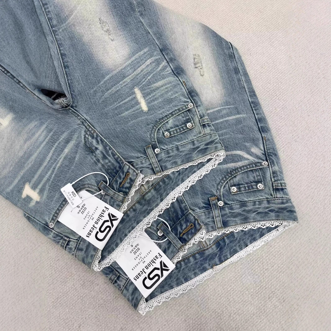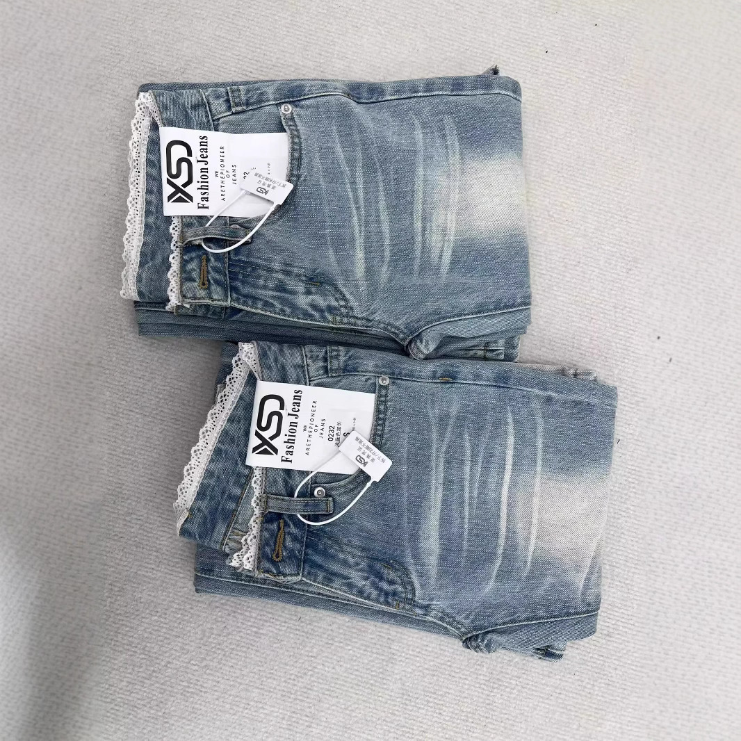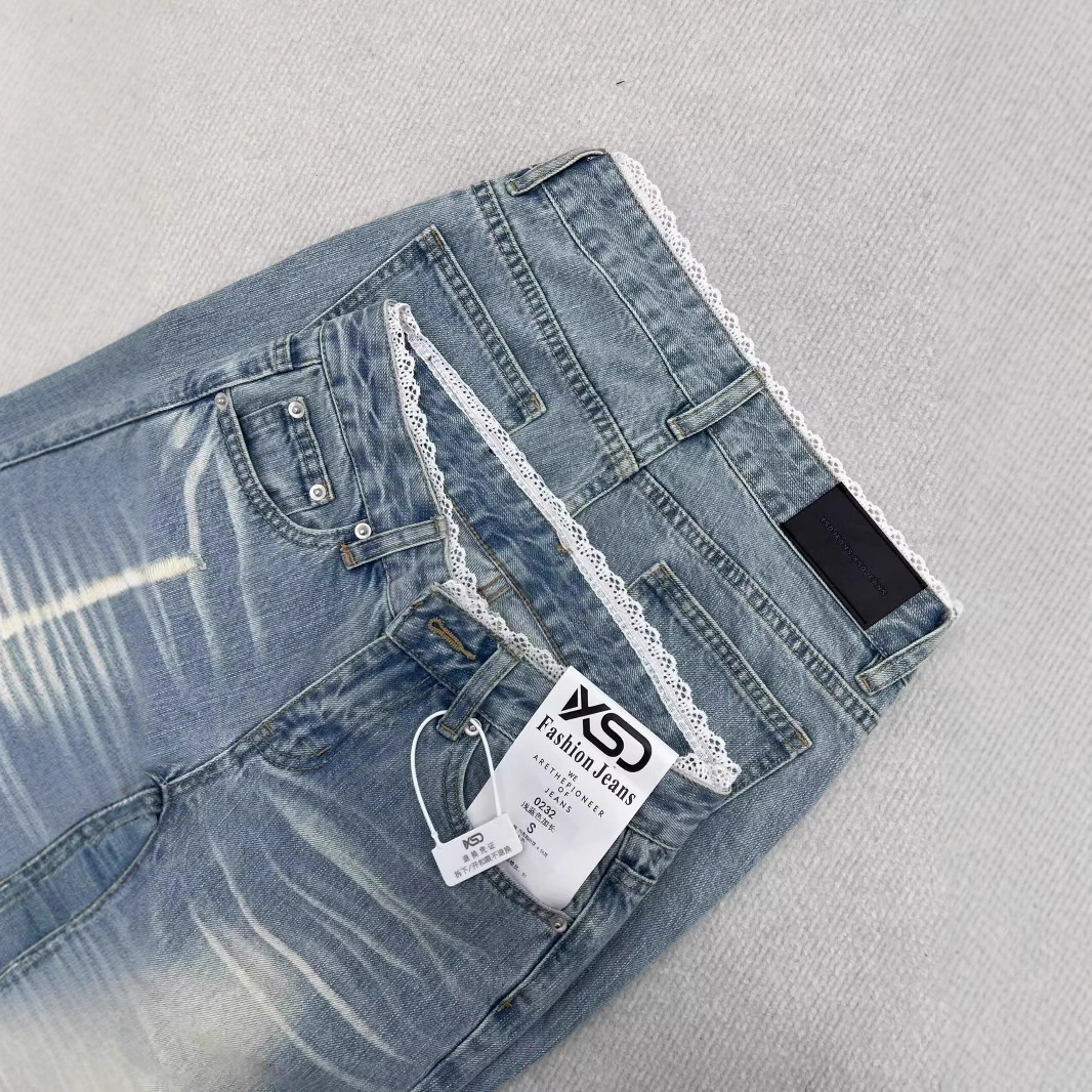 여름 여성을 위한 디자인 레이스 스플라이싱 마이크로 플레어 청바지 새로운 스타일 핫걸 로우 웨이스트 스트레치 말굽 바지 다재다능하고 트렌디함