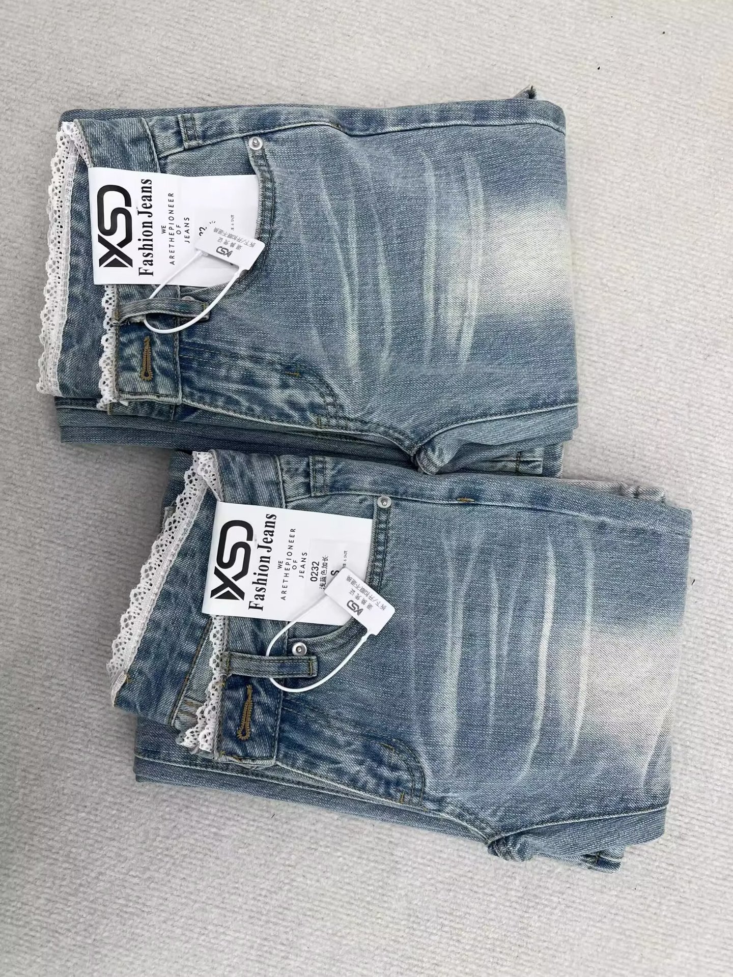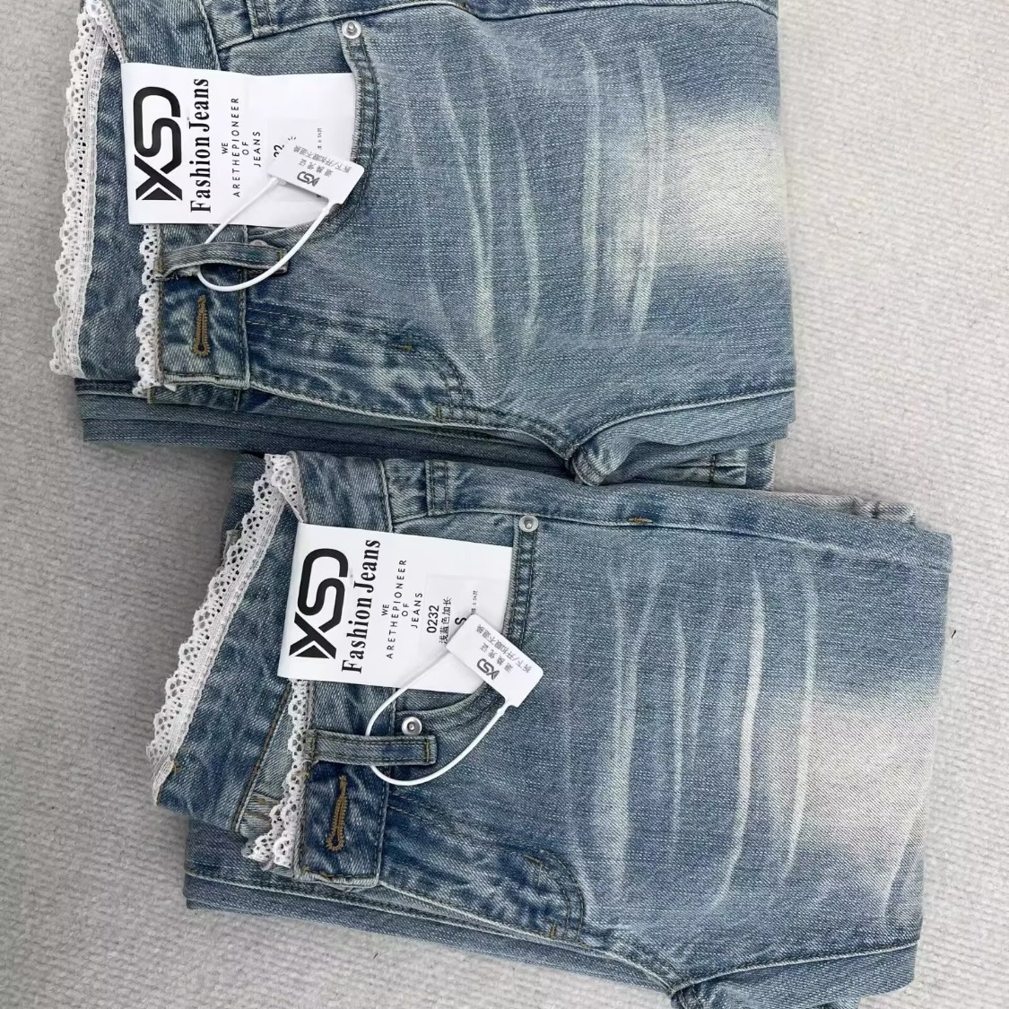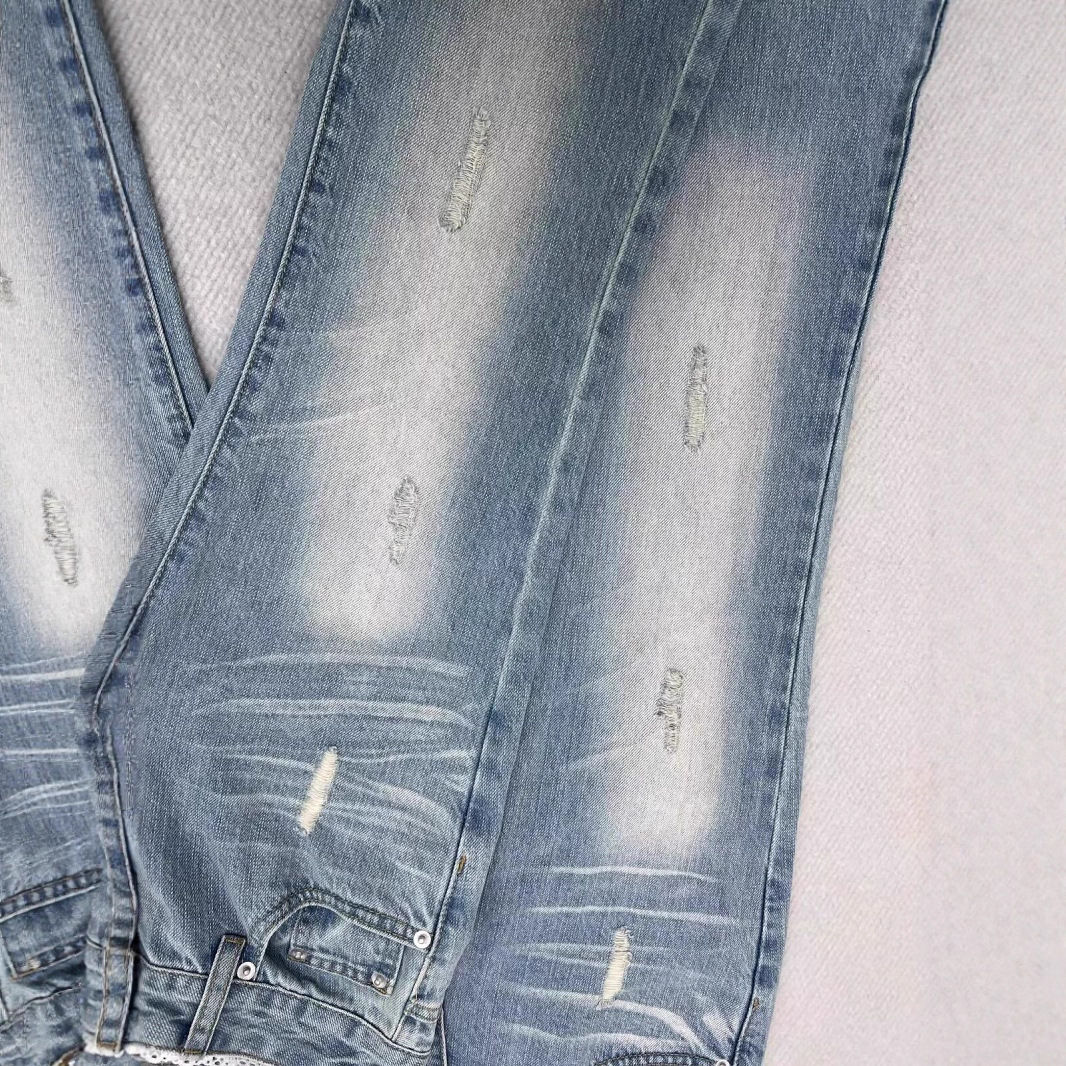여름 여성을 위한 디자인 레이스 스플라이싱 마이크로 플레어 청바지 새로운 스타일 핫걸 로우 웨이스트 스트레치 말굽 바지 다재다능하고 트렌디함
