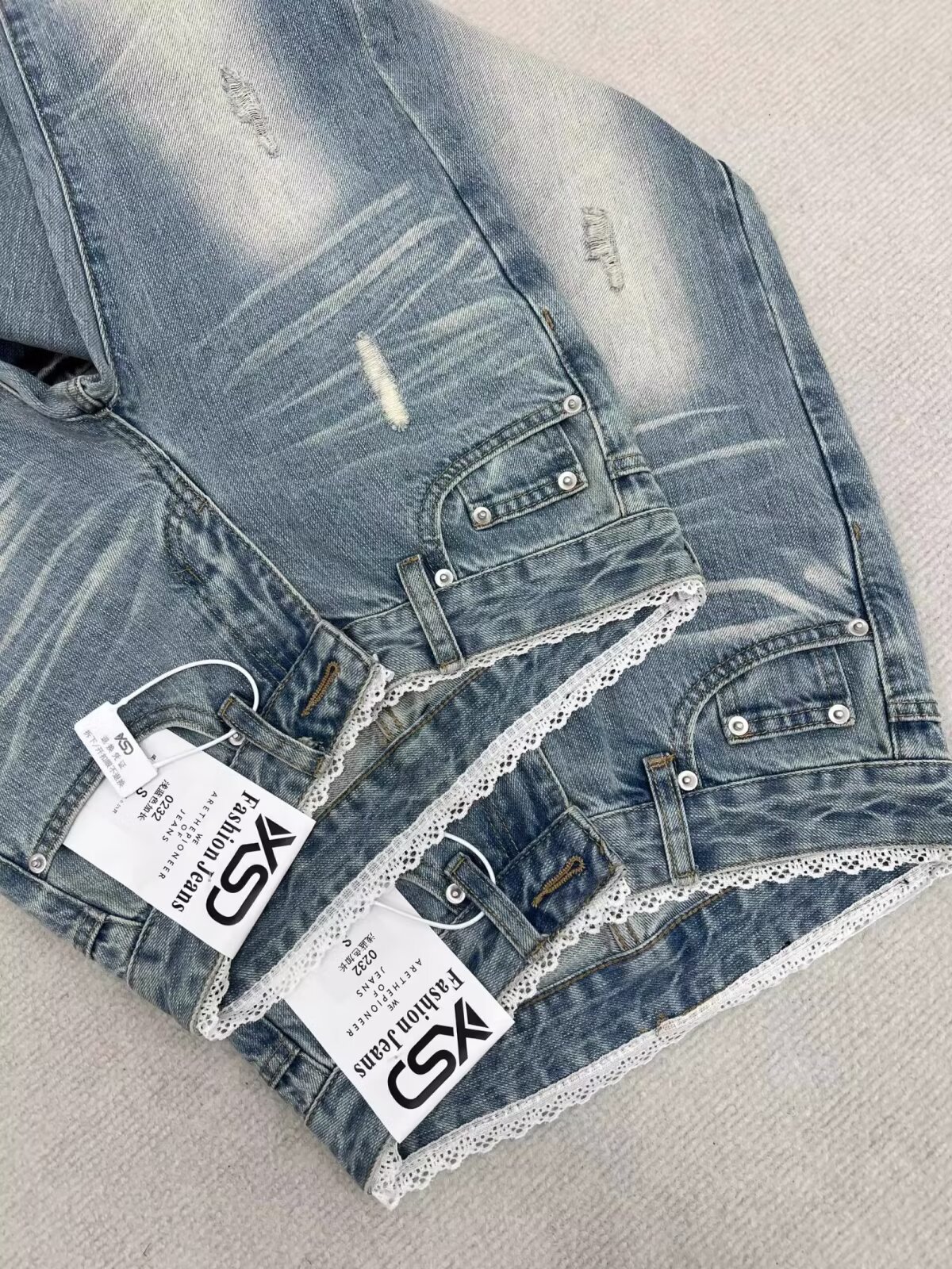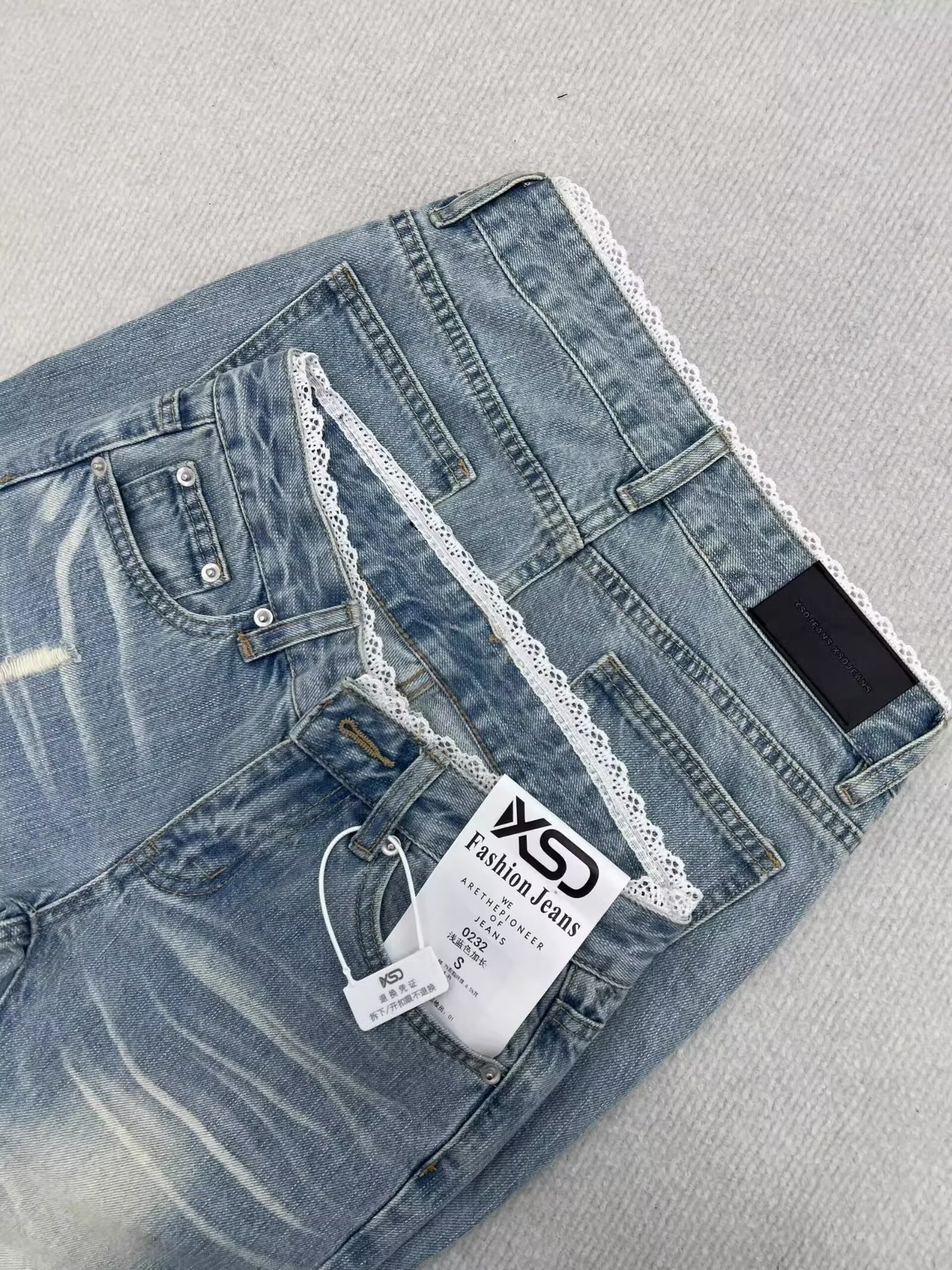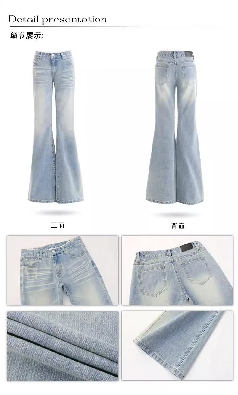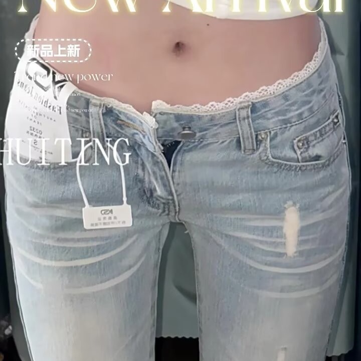 여름 여성을 위한 디자인 레이스 스플라이싱 마이크로 플레어 청바지 새로운 스타일 핫걸 로우 웨이스트 스트레치 말굽 바지 다재다능하고 트렌디함스토어 가기