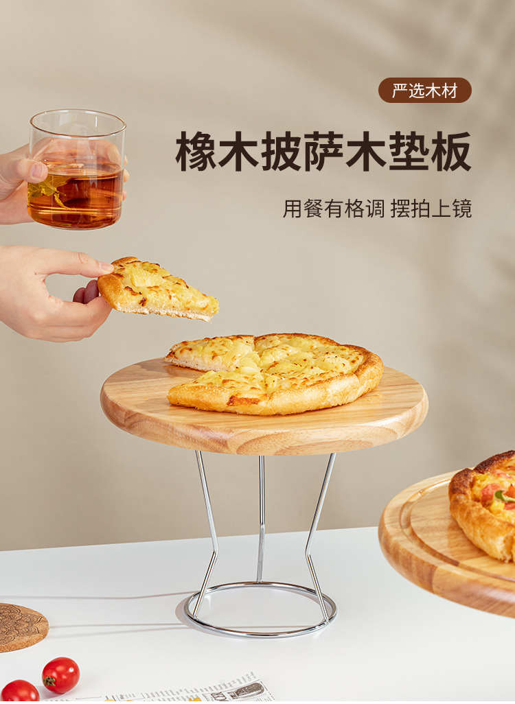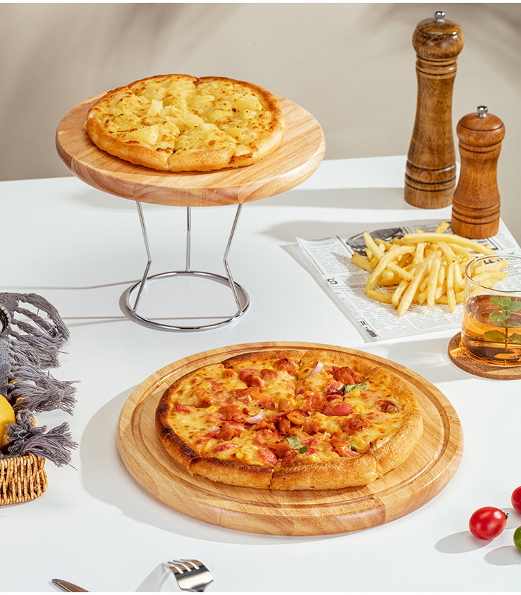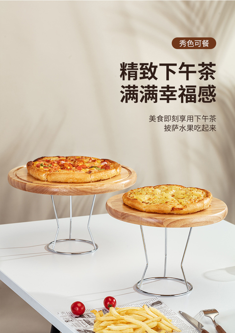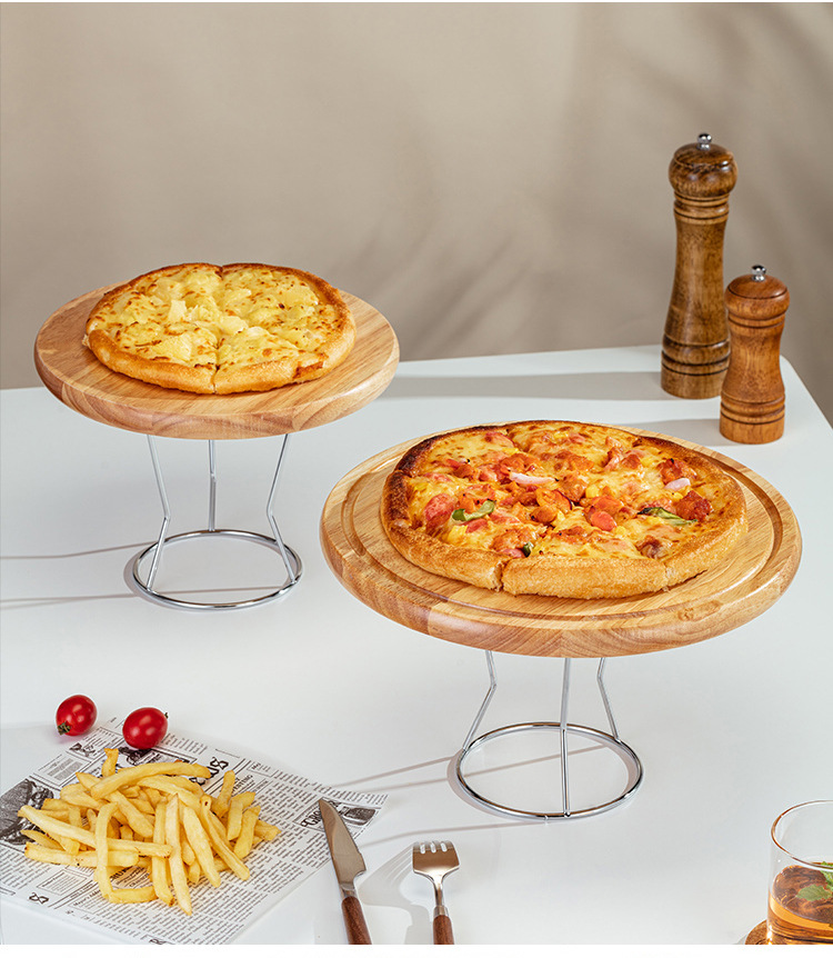 스탠드가 있는 오크 원목 피자 나무 트레이 상업용 애프터눈 티 케이크 플레이트 디저트 샵 디스플레이 스탠드