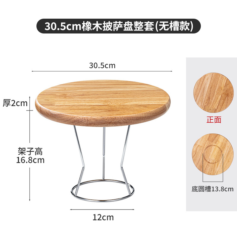 • 【홈 있음】 30.5cm 오크 피자 팬 + 스테인리스 스틸 거치대