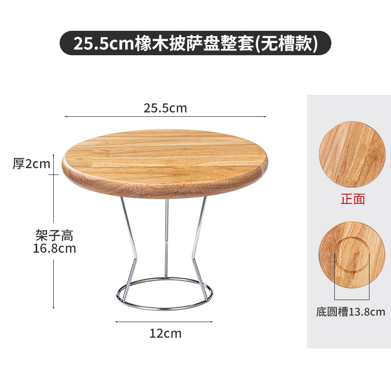 • 【홈 있음】 25.5cm 오크 피자 팬 + 스테인리스 스틸 거치대
