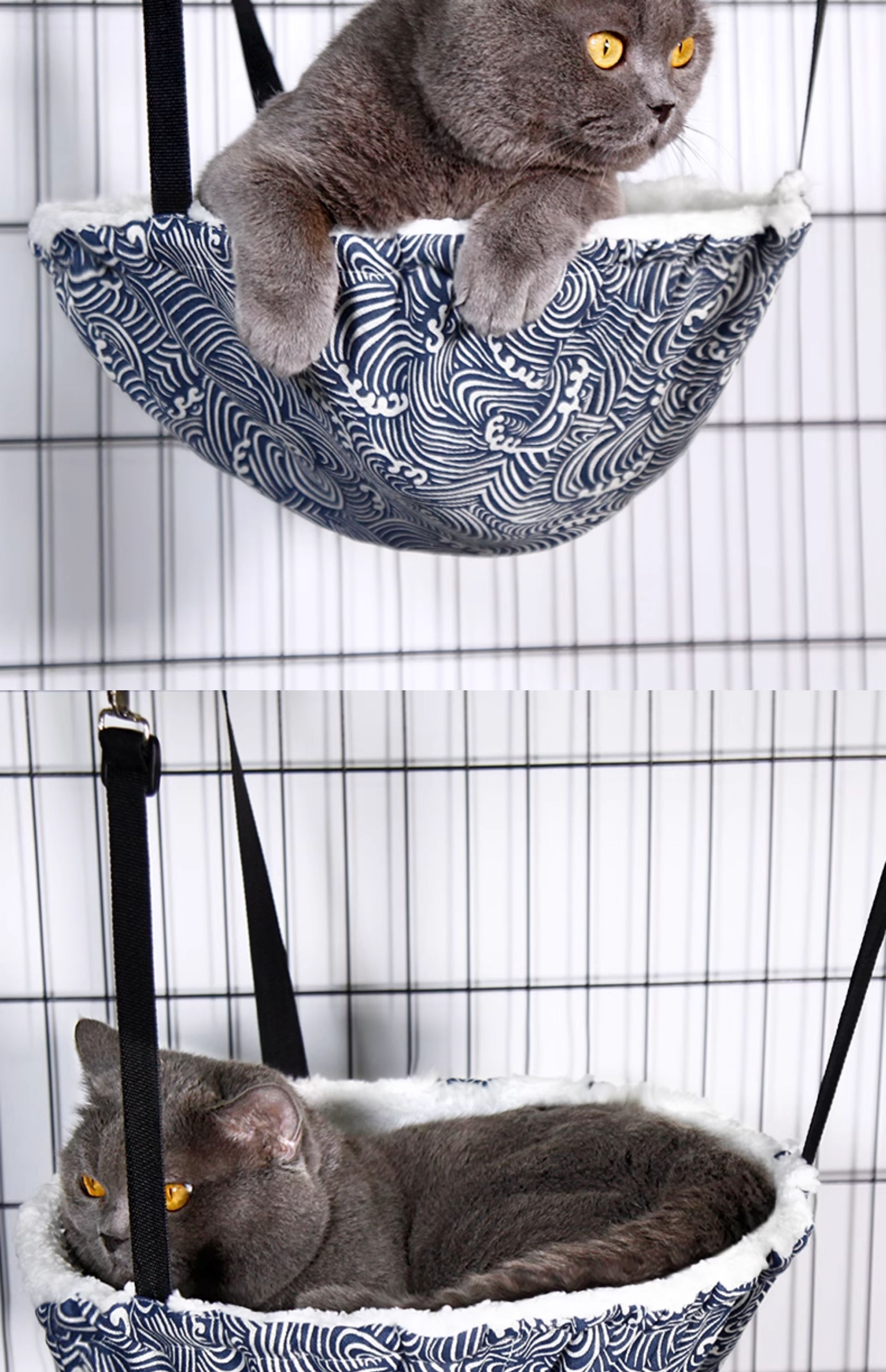 • 벨벳 고양이 매달린 둥지 - 파도(철제 고리가 더욱 안정적으로 고정됨)