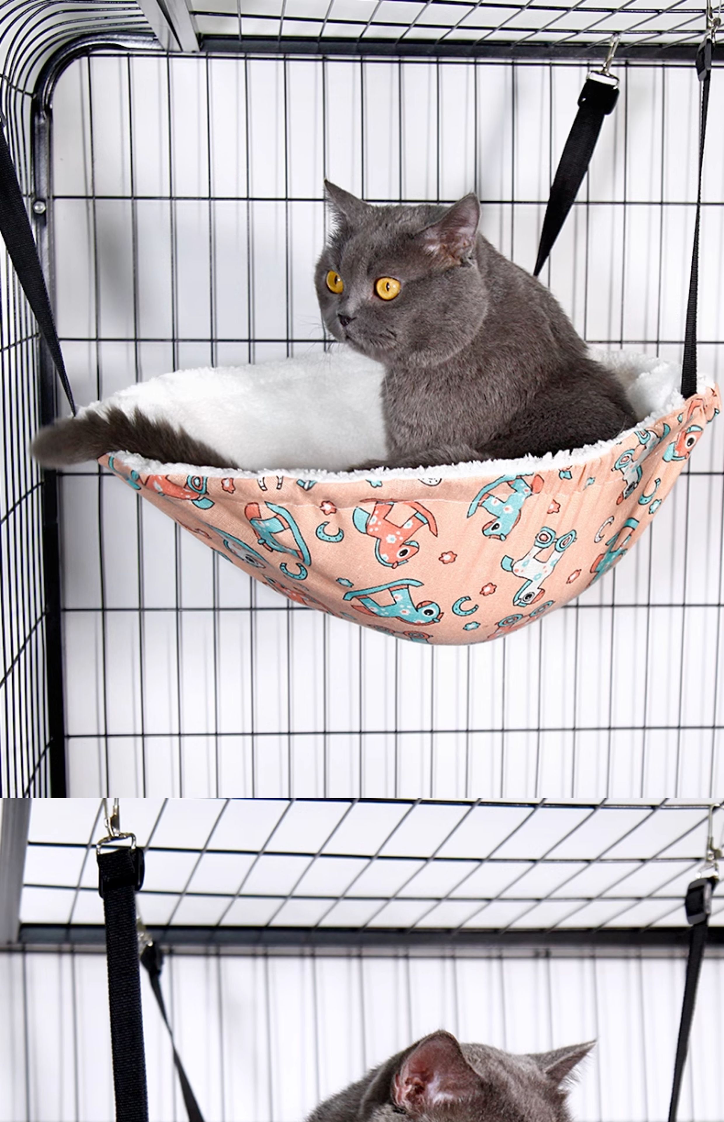 • 벨벳 고양이 매달린 둥지 - 핑크색 목마(철제 고리가 더욱 안정적으로 고정됨)