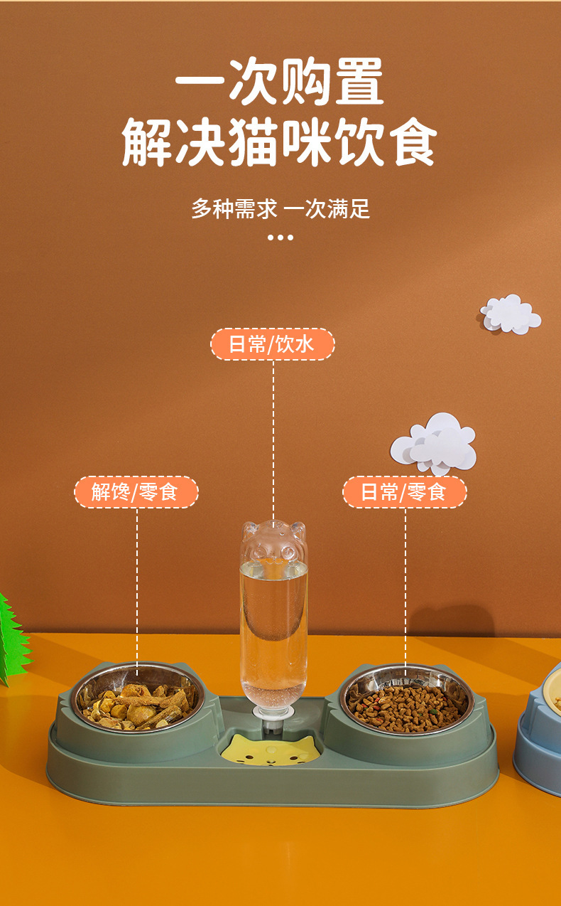 애완동물 고양이 식기, 이중 그릇, 목 그릇, 고양이 음수 및 개밥을 자동으로 뒤집는 방지, 새로운 스타일