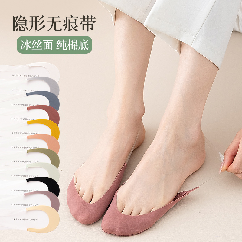 여성을 위한 봄 여름 인기 아이스 실크 보트 양말, 보이지 않는 미끄럼 방지 및 냄새 방지 실리콘 바닥 반 손바닥 양말, 멀티 시나리오 캐주얼 양말 도매스토어 가기