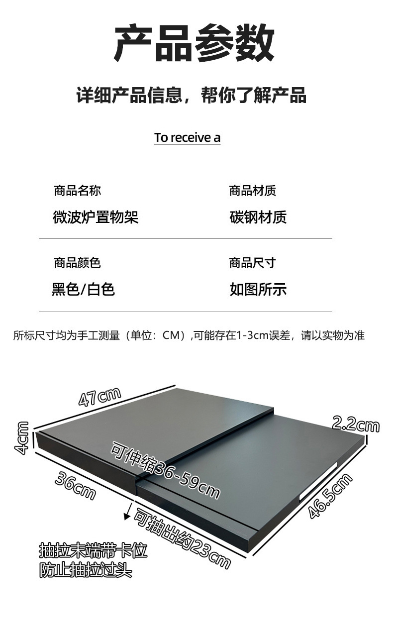 • 주방수납선반 - 인출식 서랍 + 신축식 보드 [블랙]