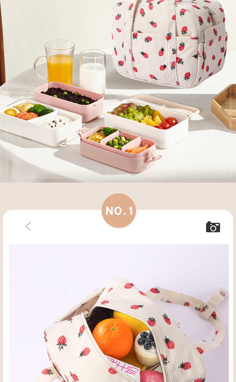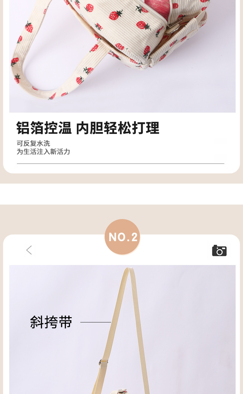 새로운 코듀로이 딸기 식기 가방 직장인 야외 보온 가방 도시락 가방 휴대용 점심 가방스토어 가기
