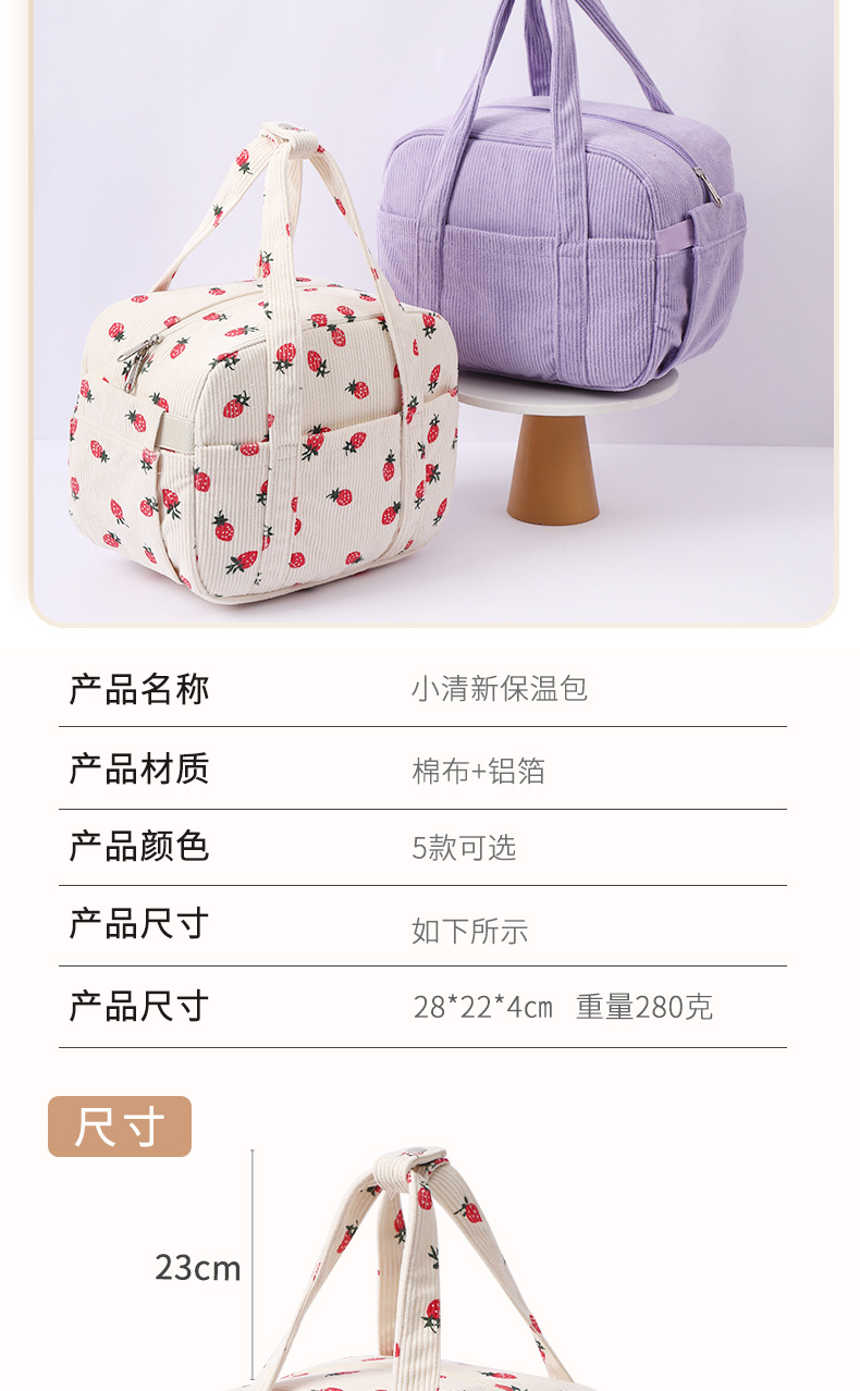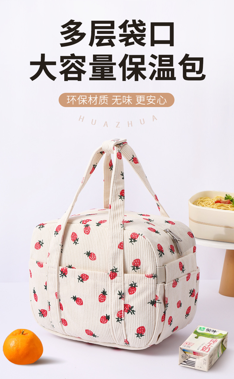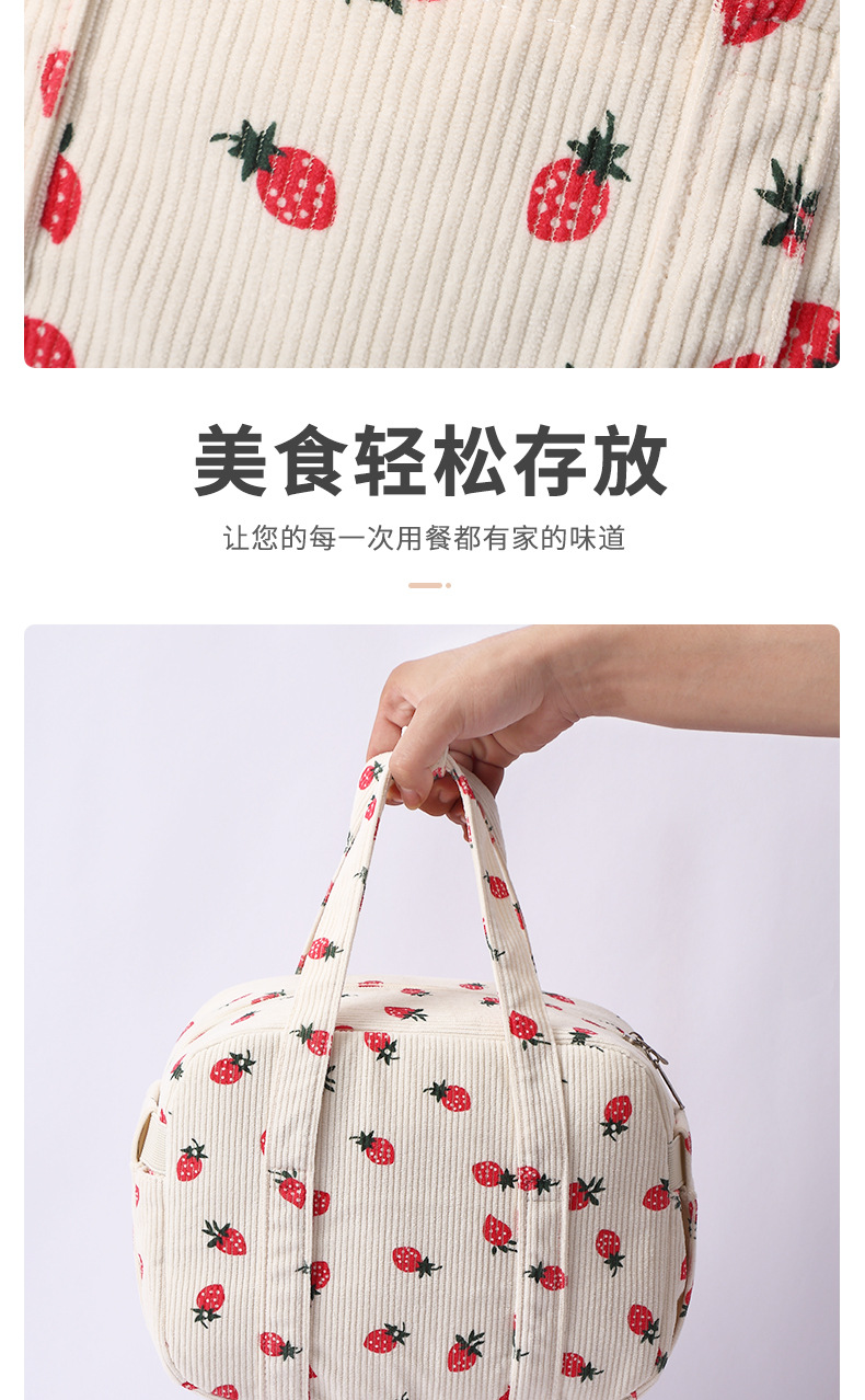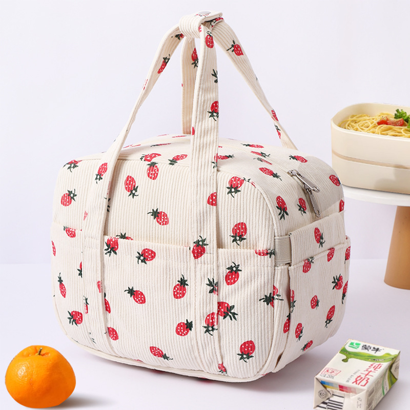 새로운 코듀로이 딸기 식기 가방 직장인 야외 보온 가방 도시락 가방 휴대용 점심 가방