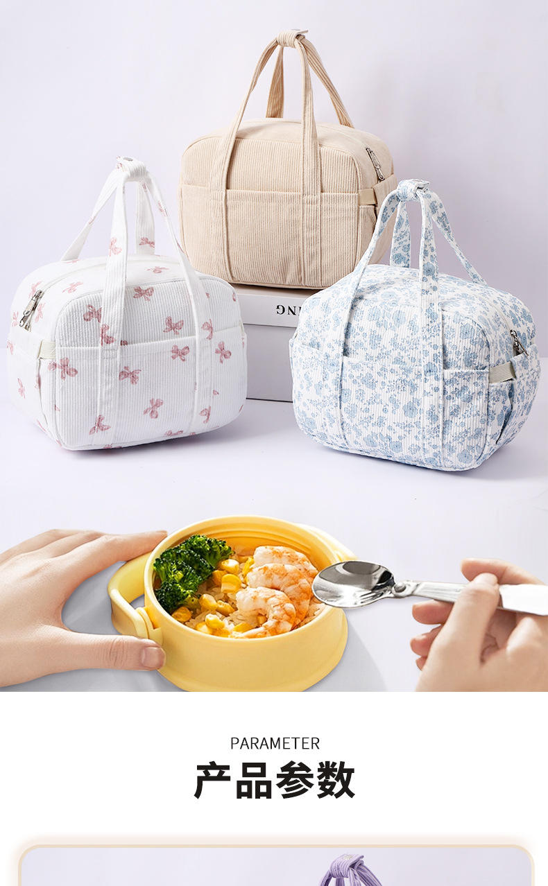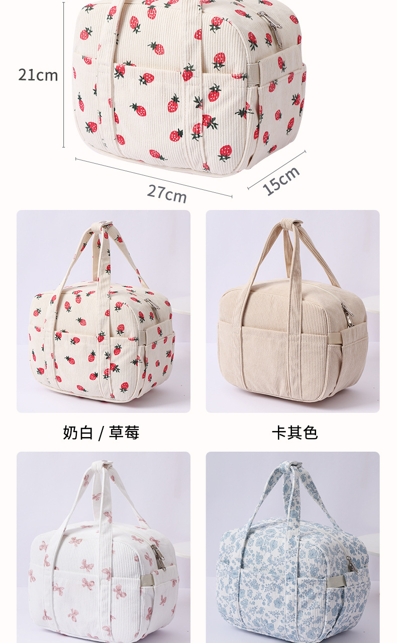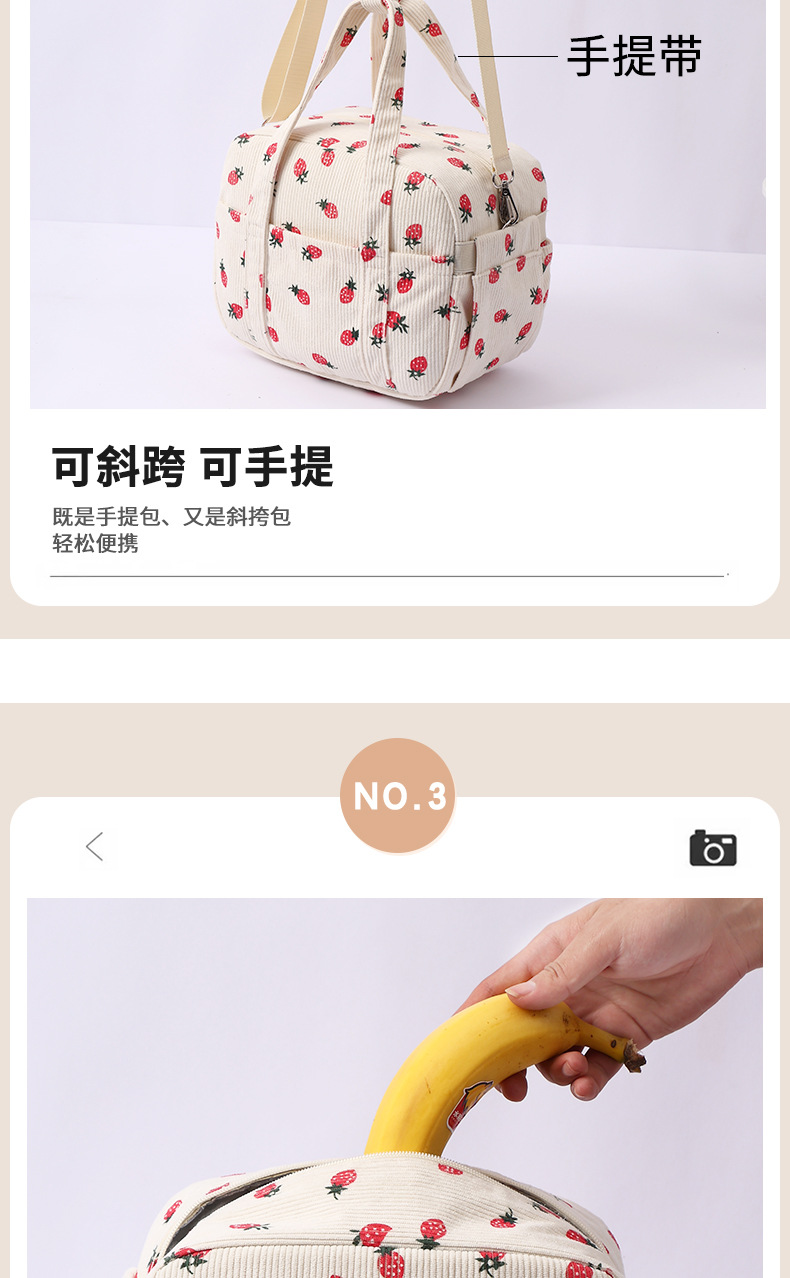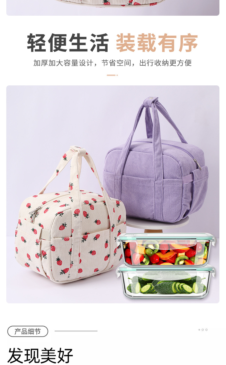 새로운 코듀로이 딸기 식기 가방 직장인 야외 보온 가방 도시락 가방 휴대용 점심 가방