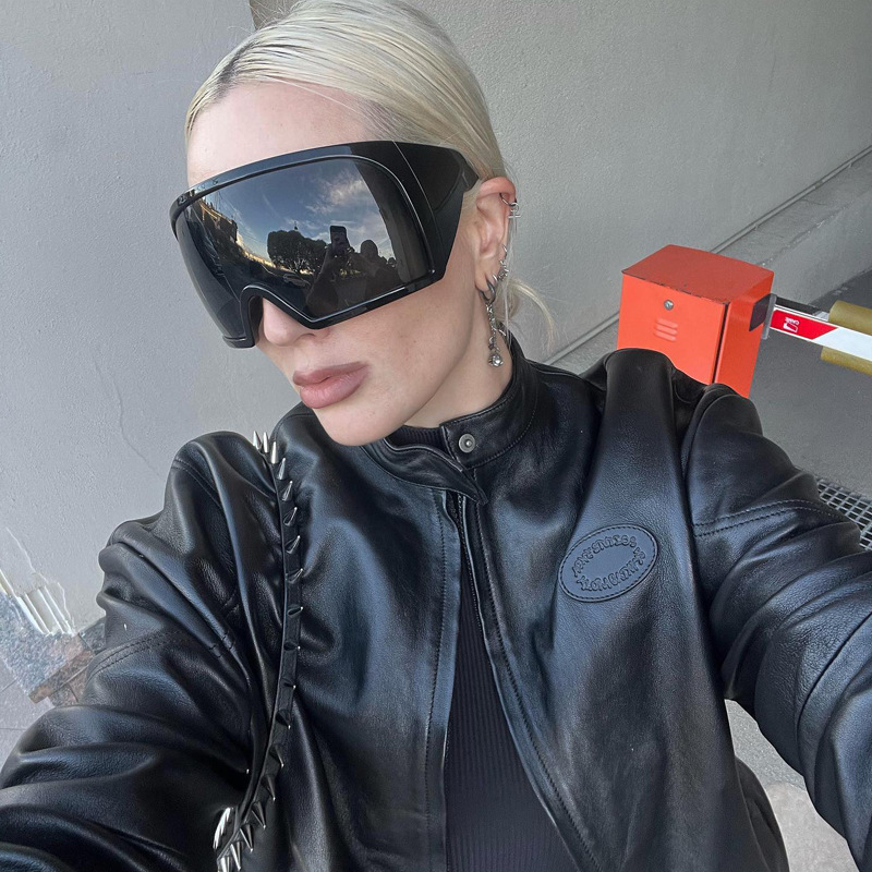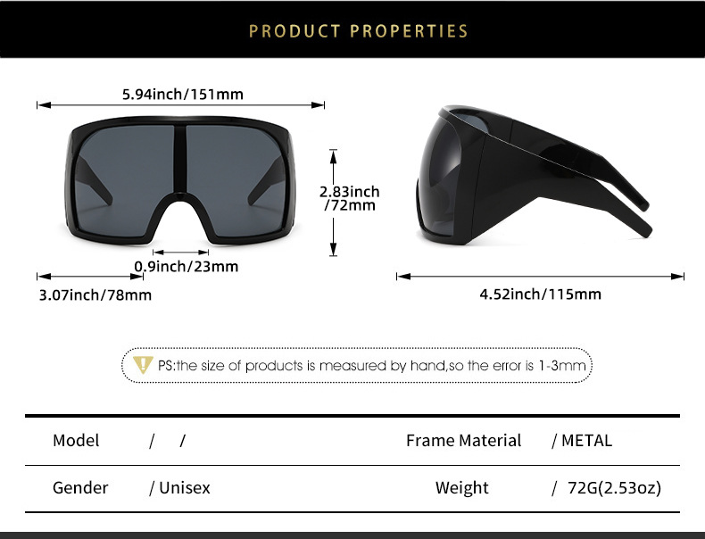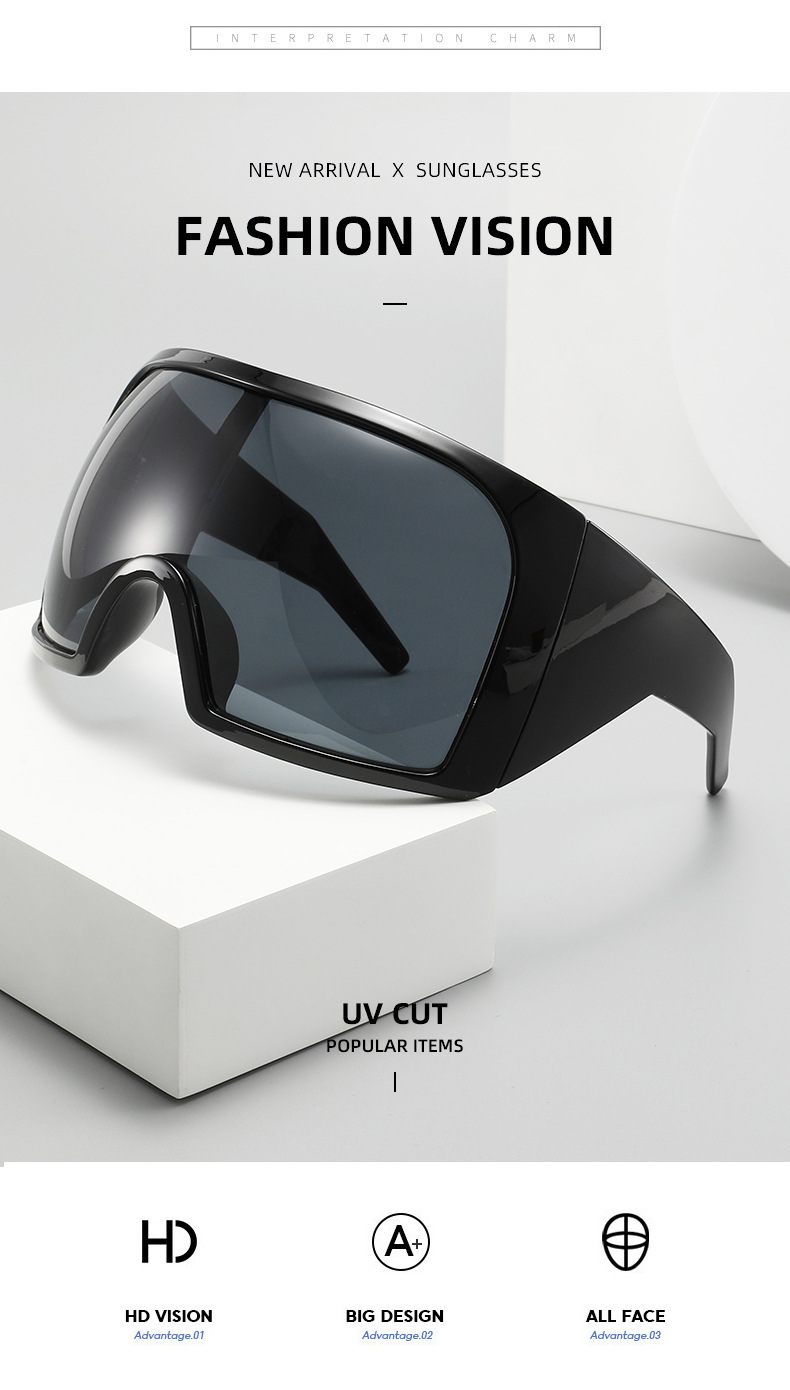 국경을 넘나드는 새로운 대형 프레임 일체형 야외 선글라스, 미래 기술 감각의 일체형 고글 선글라스, 패셔너블한 펑크 안경