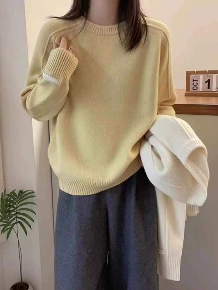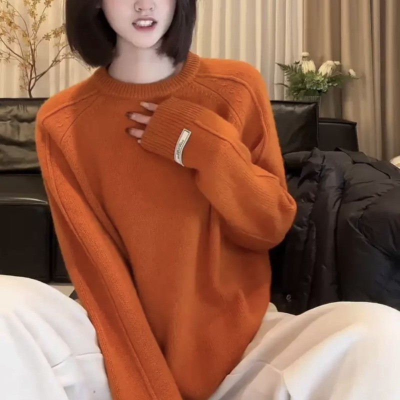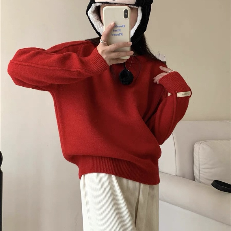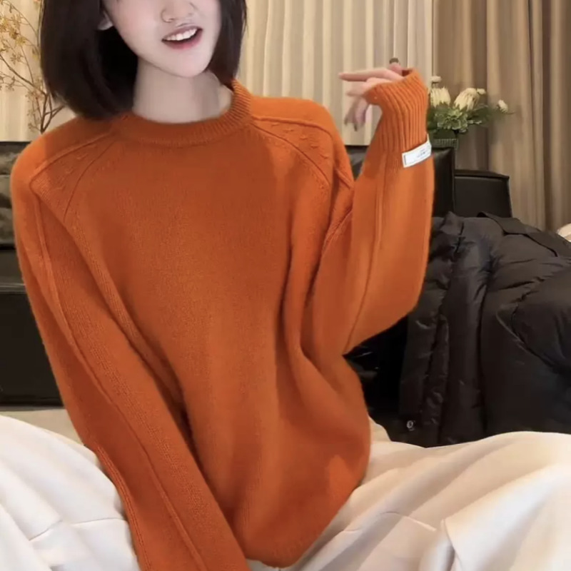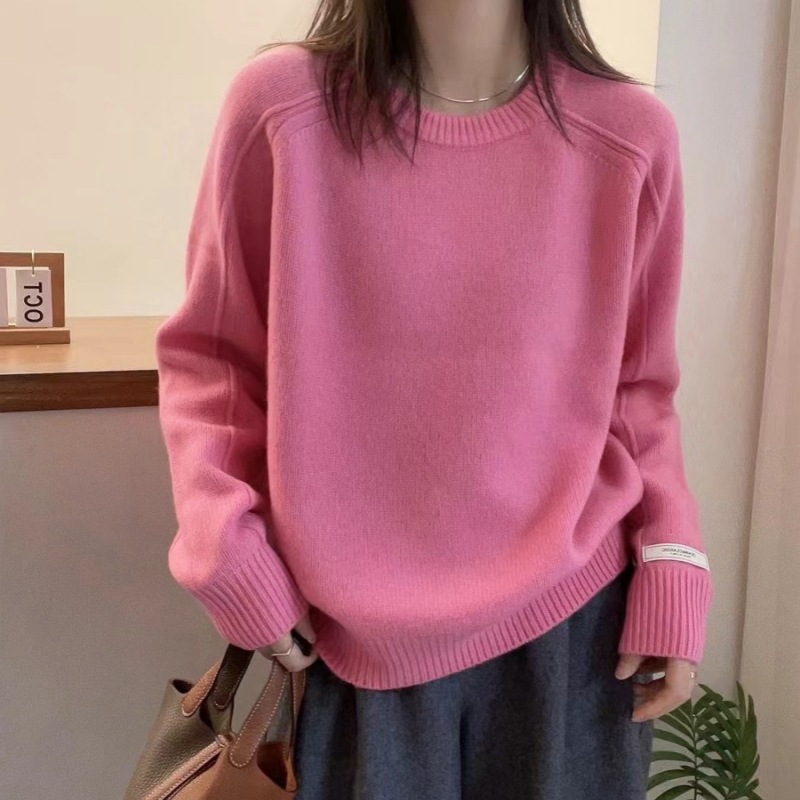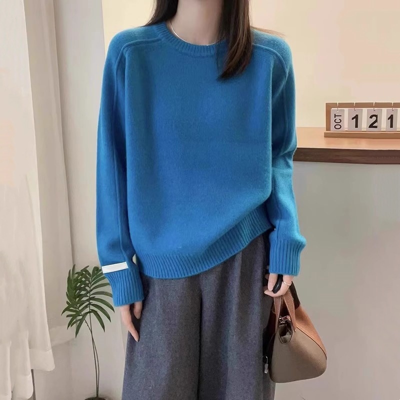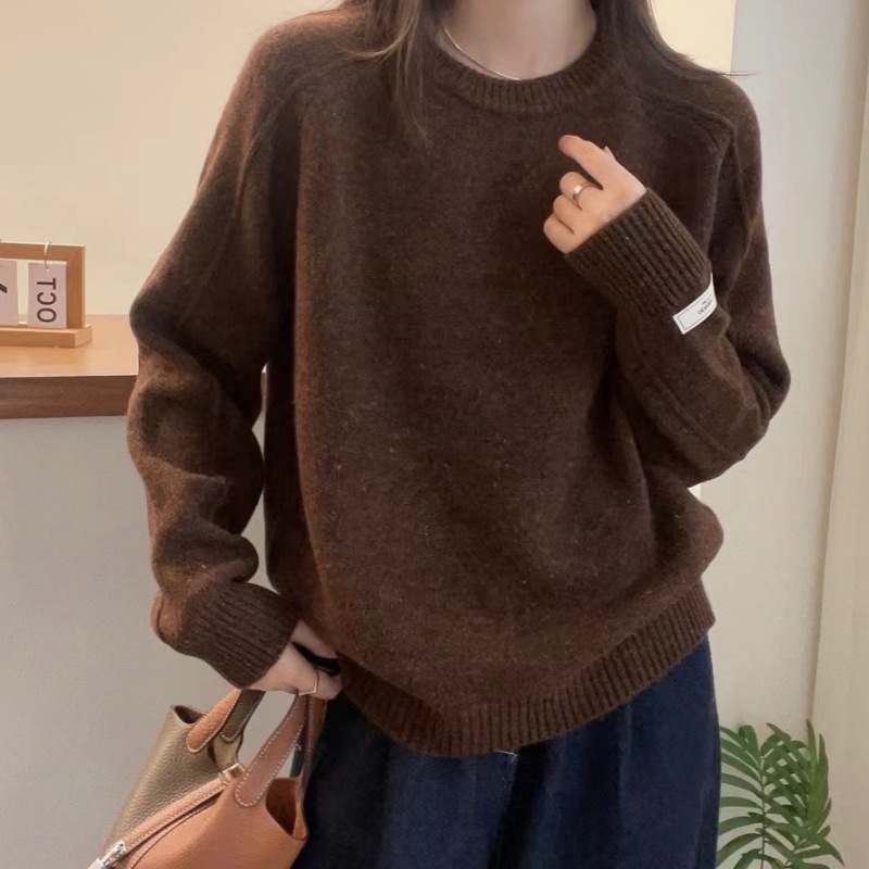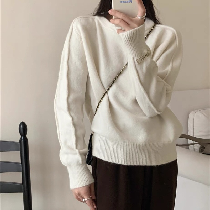 한국 스타일 가을, 겨울 새로운 스타일 라운드 넥 커프 라벨 디자인 느슨한 대학 스타일 스웨터 여성 풀오버 스웨터 탑 여성스토어 가기