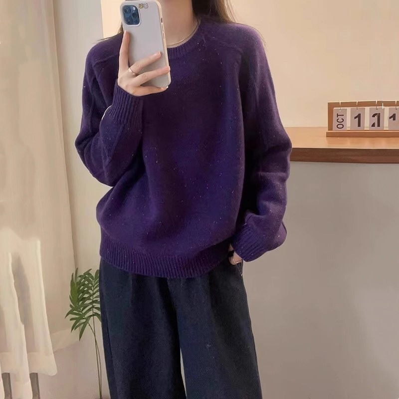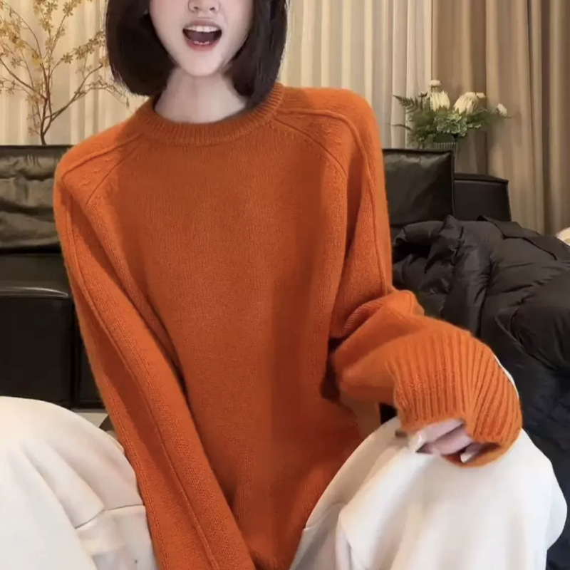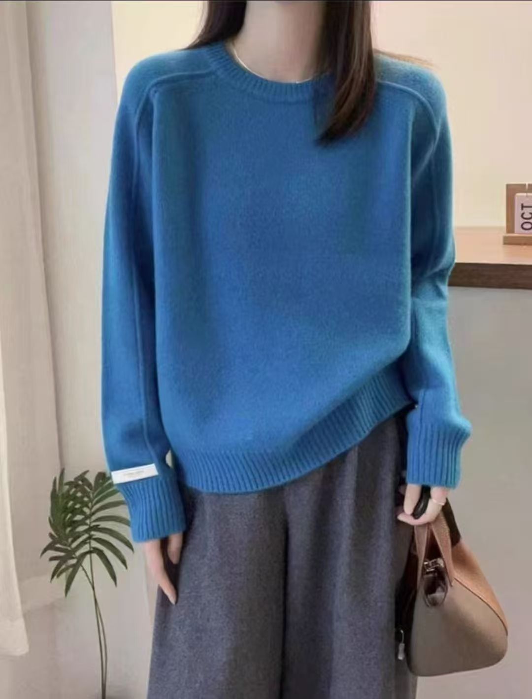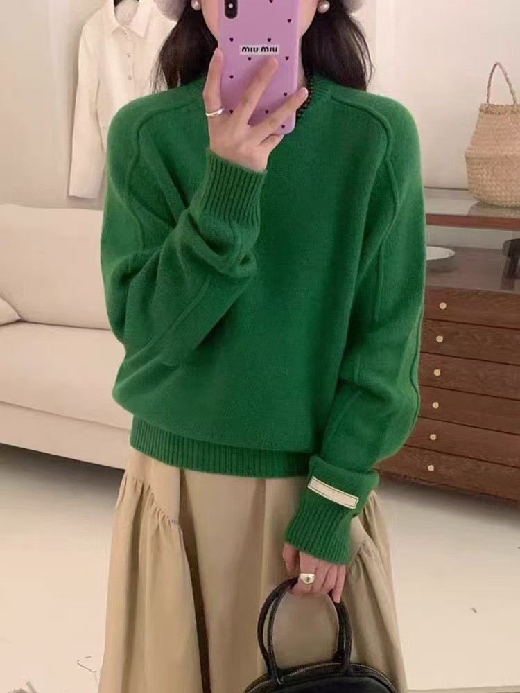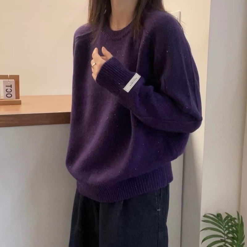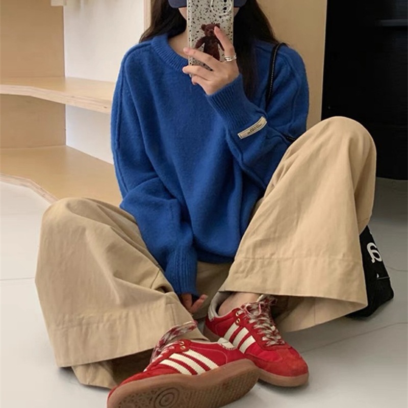 한국 스타일 가을, 겨울 새로운 스타일 라운드 넥 커프 라벨 디자인 느슨한 대학 스타일 스웨터 여성 풀오버 스웨터 탑 여성스토어 가기