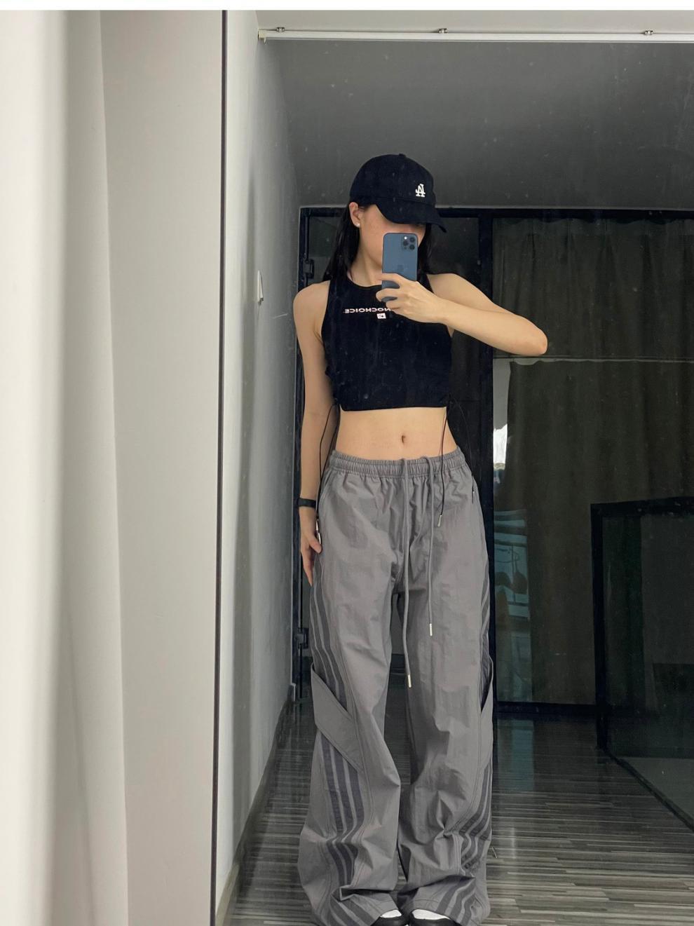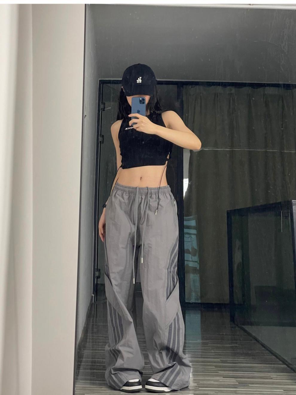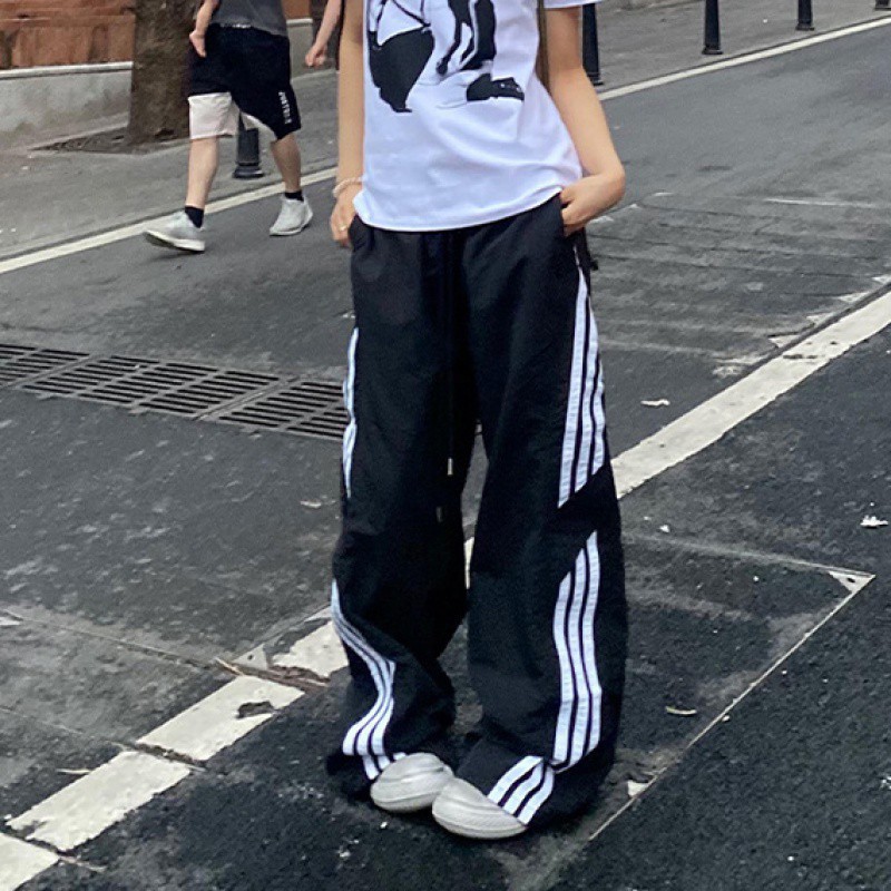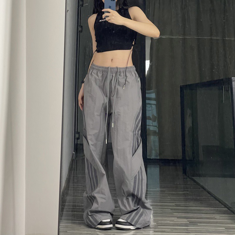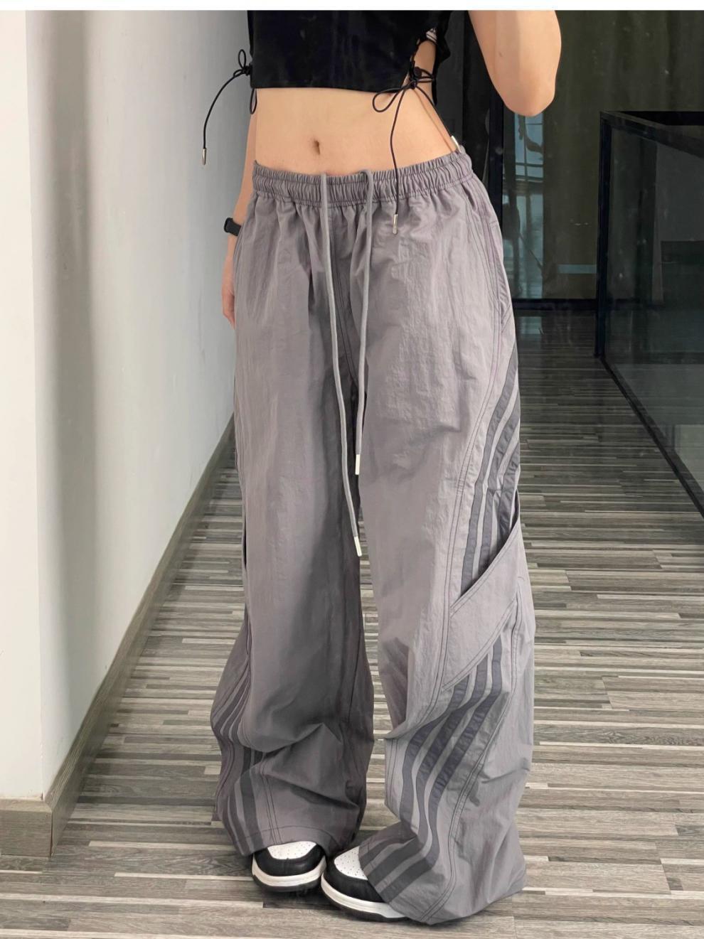 아메리칸 사이드 스트라이프 여름 얇은 공수 바지 여성용 루즈 와이드 레그 스트레이트 스트리트 댄스 스포츠 카고 바지