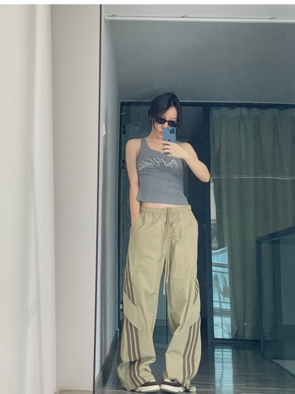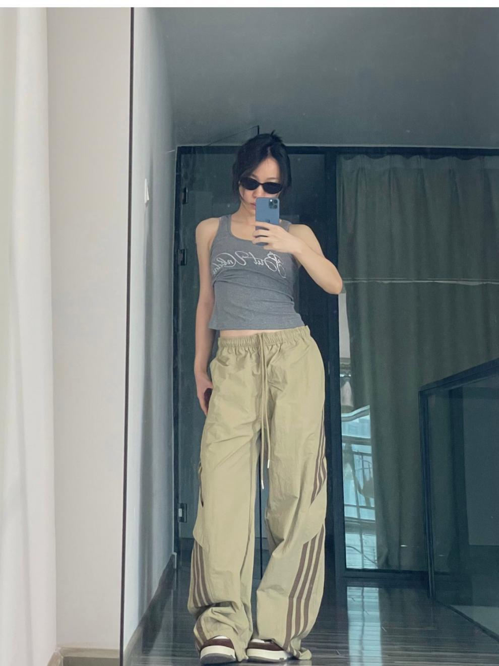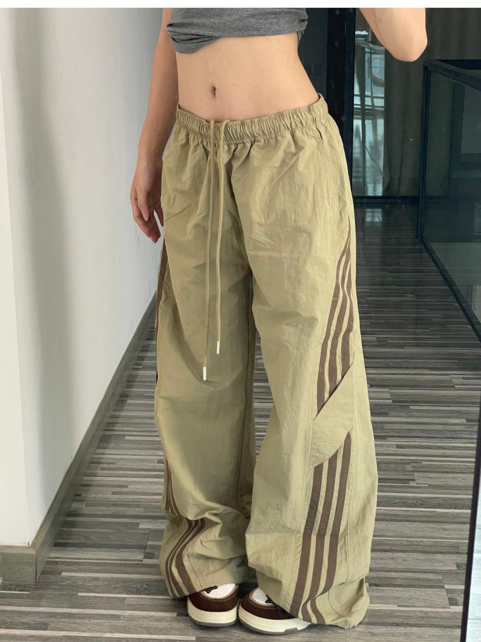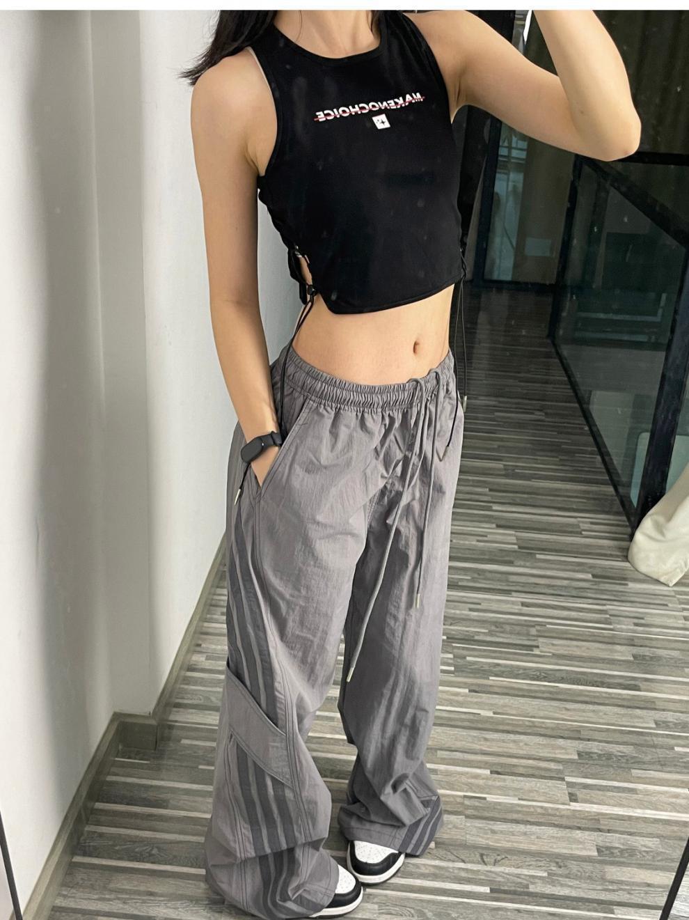 아메리칸 사이드 스트라이프 여름 얇은 공수 바지 여성용 루즈 와이드 레그 스트레이트 스트리트 댄스 스포츠 카고 바지스토어 가기