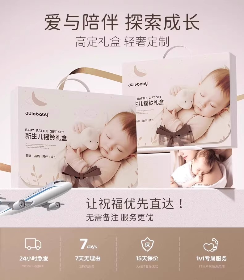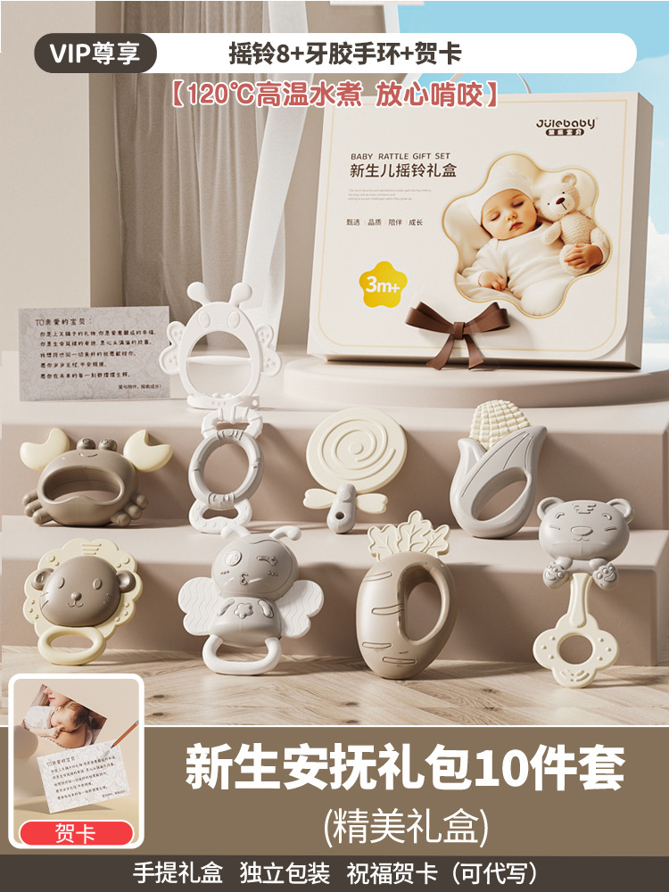 • Julebaby - 신생아 진정 선물팩 10종 세트 [딸랑이8+치발기팔찌+카드]-6256A