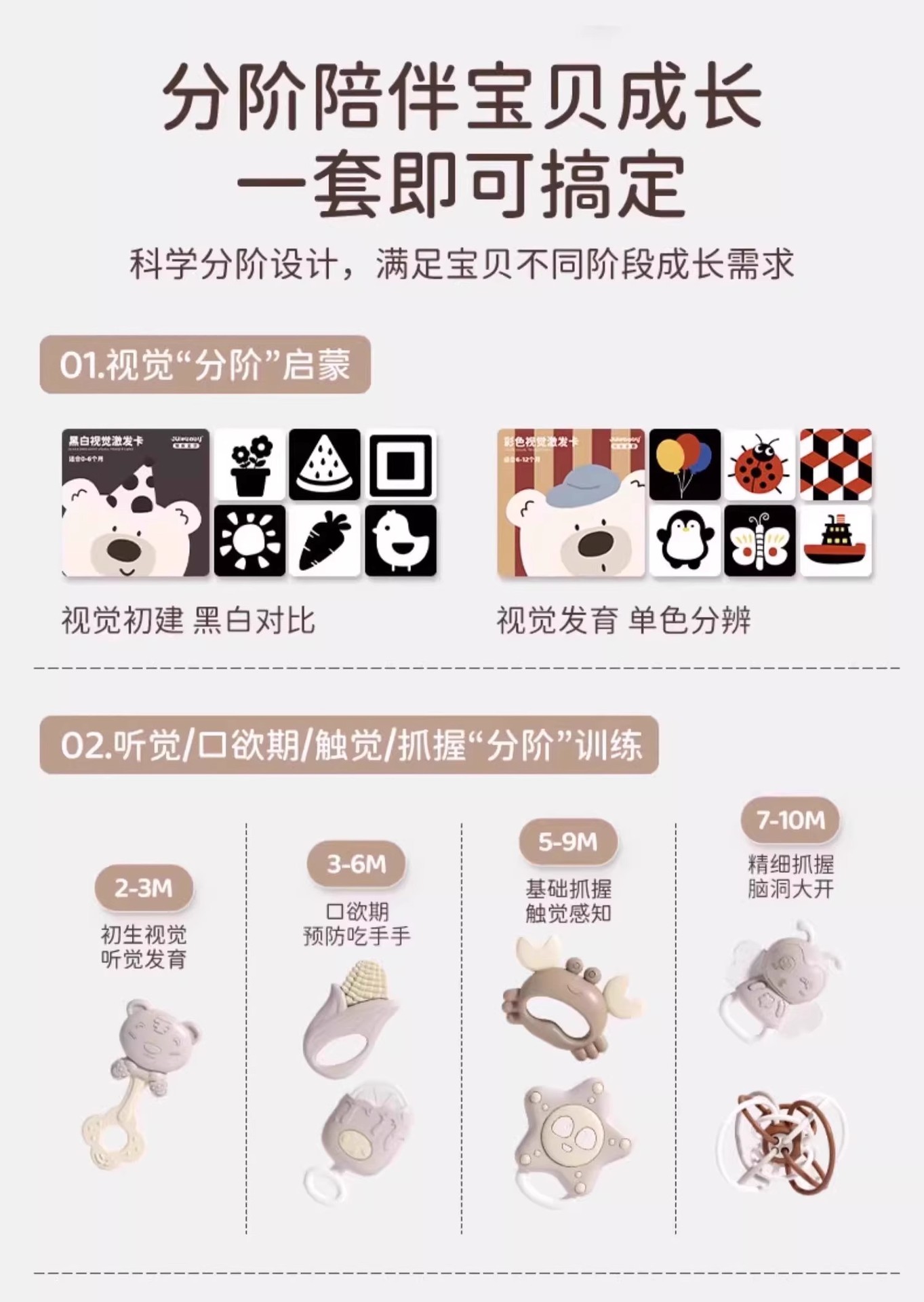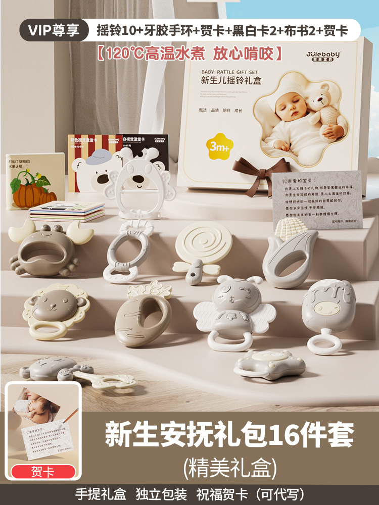 • Julebaby - 신생아 진정 선물팩 16종 세트 [딸랑이 10개 + 치발기 팔찌 + 축하 카드 + 흑백 카드 2개 + 천책 2개] - 625
