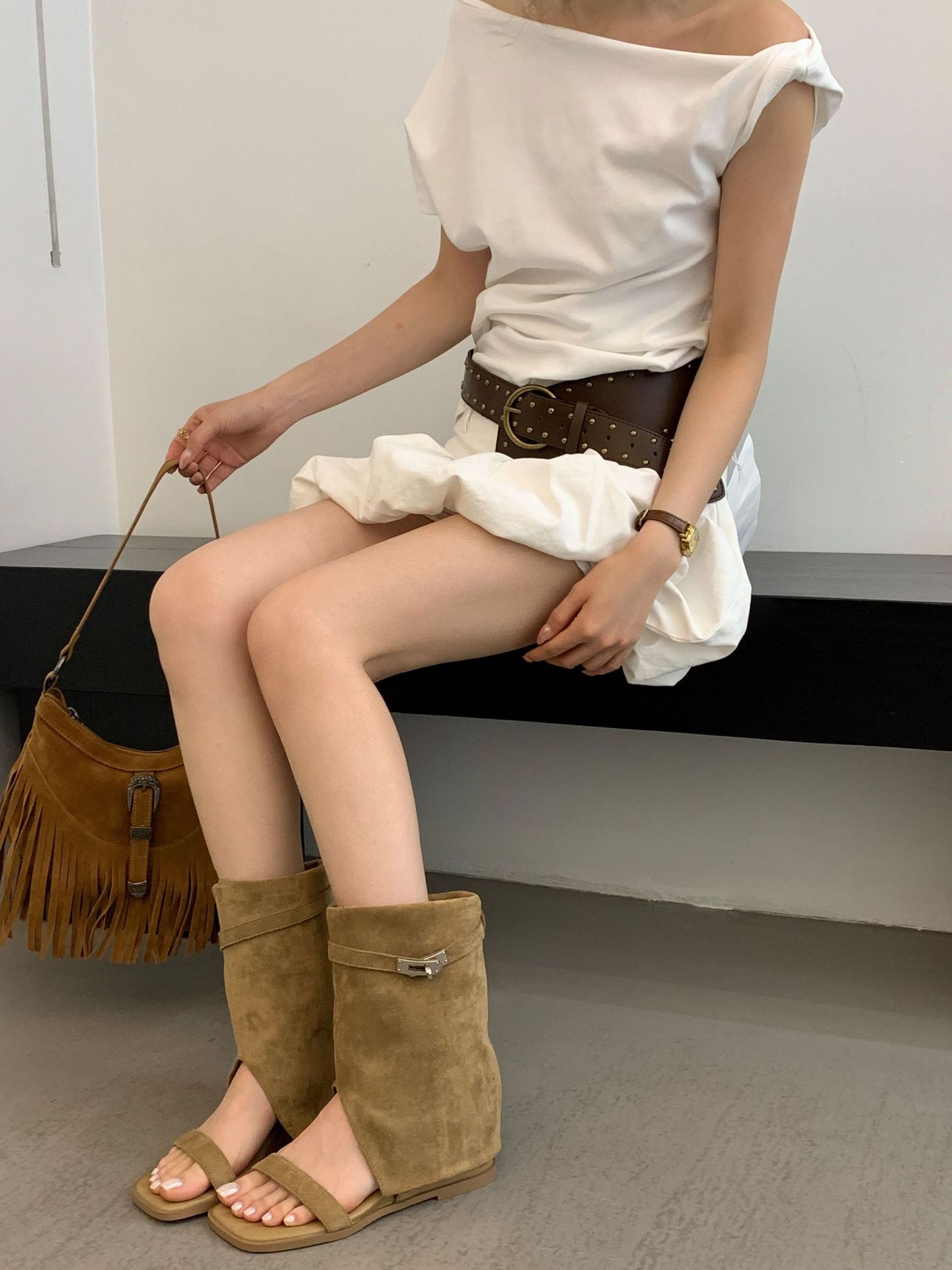 ~2025 한국식 플립플롭 여성용 샌들, 활용도 높은 플랫힐 숏부츠, 여성용 패셔너블한 싱글 슈즈, 레트로스토어 가기