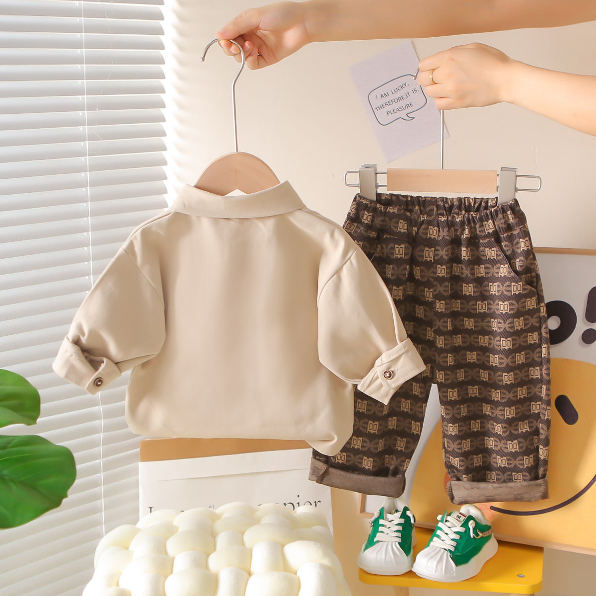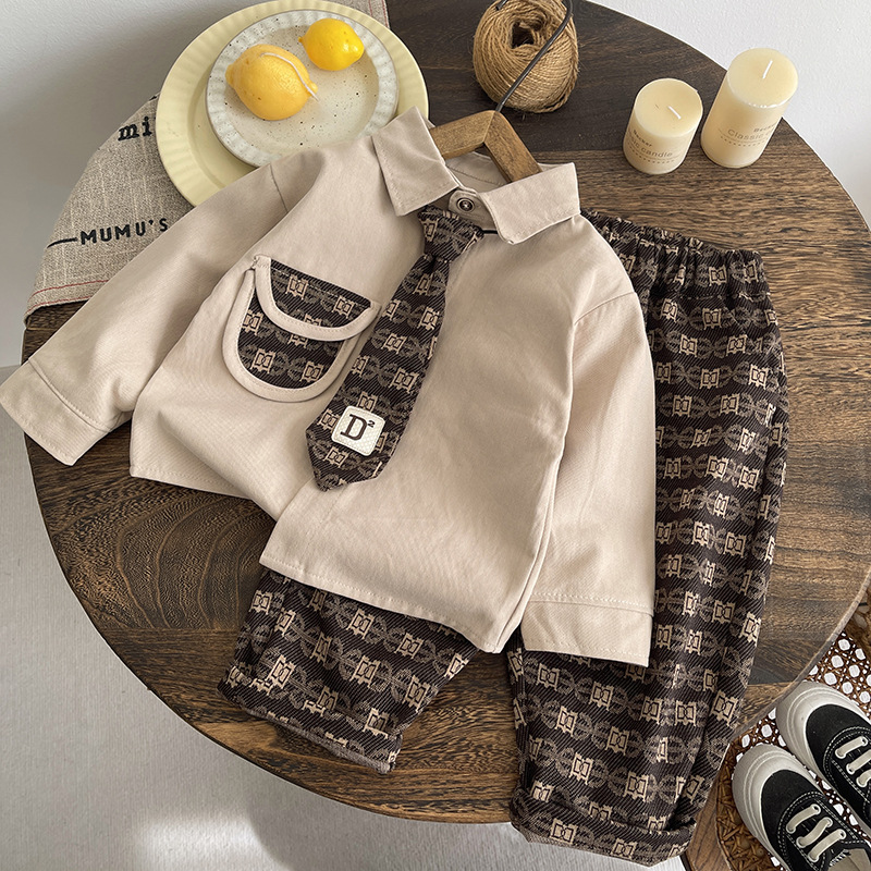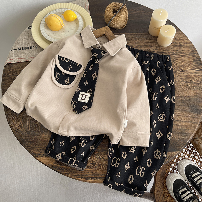 소년 가을 의류 세트 2025 새로운 잘 생긴 어린이 봄, 가을 옷 아기 가을 넥타이 셔츠 투피스 세트스토어 가기