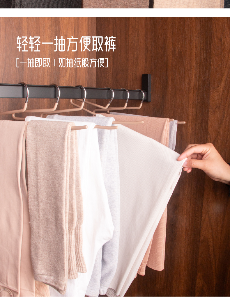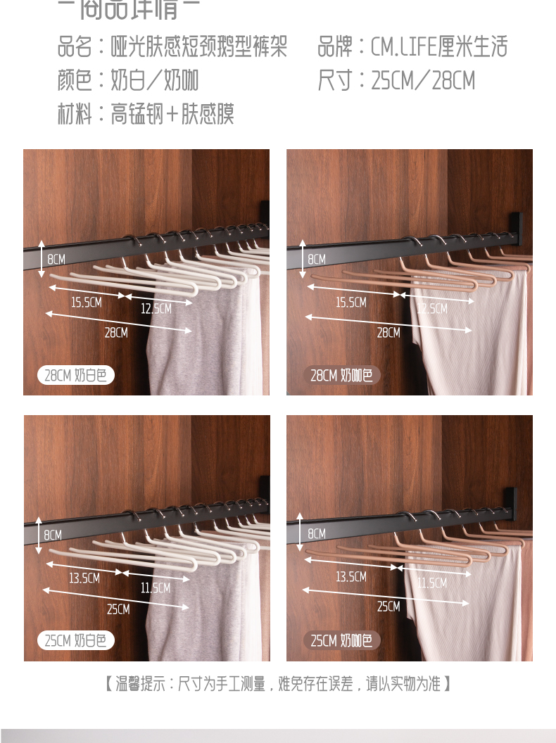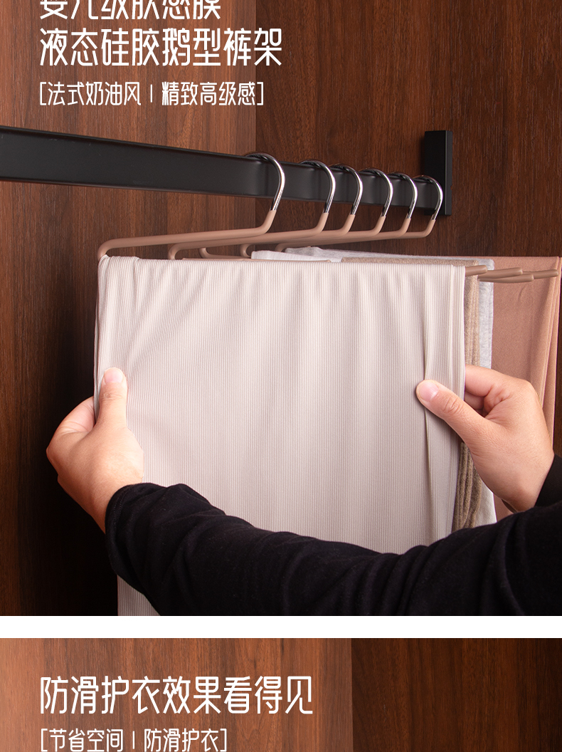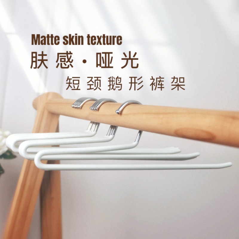 피부 느낌의 필름 짧은 목 구스형 바지 걸이 무광 밀키 화이트 옷걸이 구스넥 미끄럼 방지 바지 수납 공간이 작은 바지 걸이