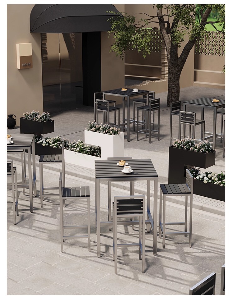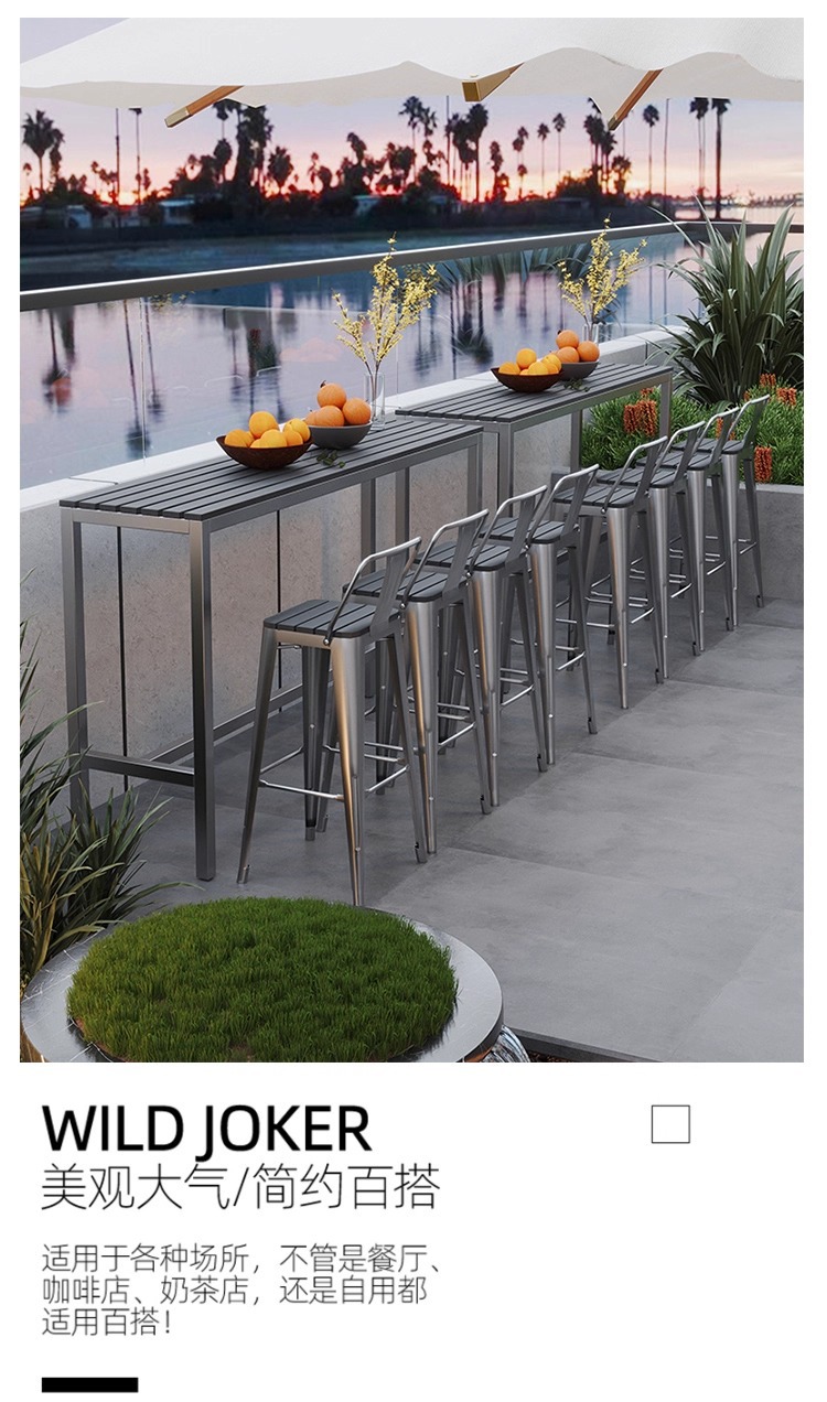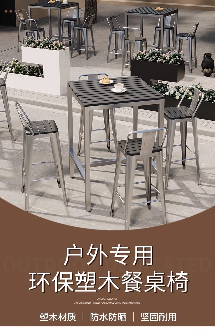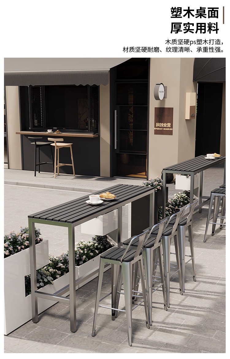 야외 플라스틱 목재 바 테이블과 의자, 야외 발코니 벽걸이형 긴 테이블 바, 야외 부식 방지 높은 바 테이블 조합스토어 가기