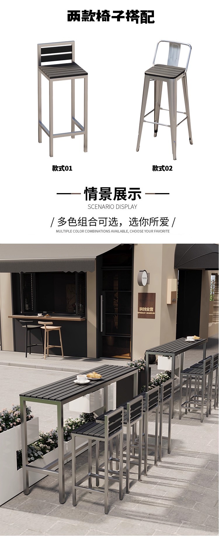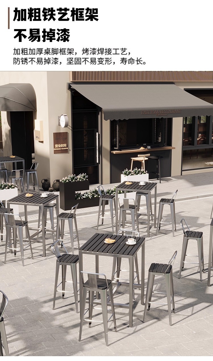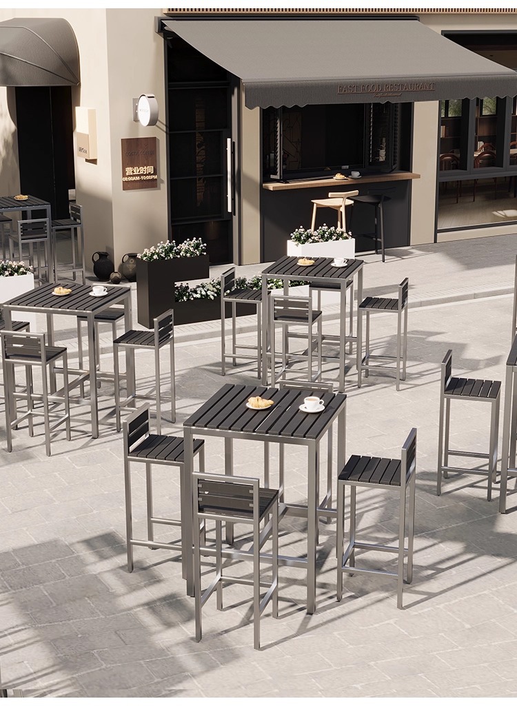 야외 플라스틱 목재 바 테이블과 의자, 야외 발코니 벽걸이형 긴 테이블 바, 야외 부식 방지 높은 바 테이블 조합스토어 가기