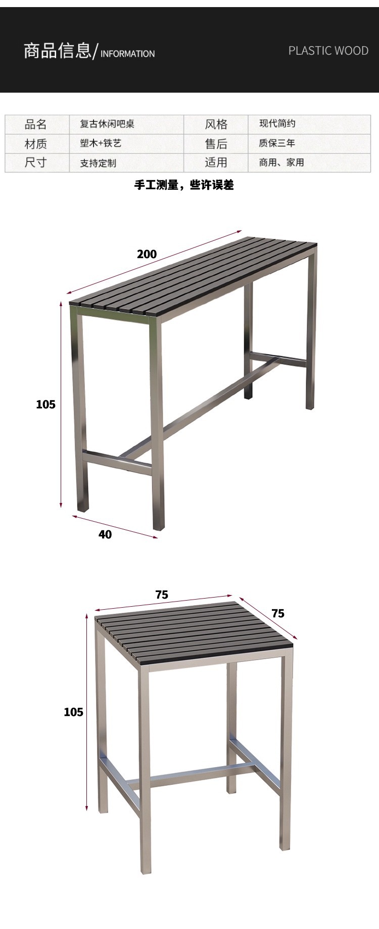 • 긴 테이블: 200*40*105cm