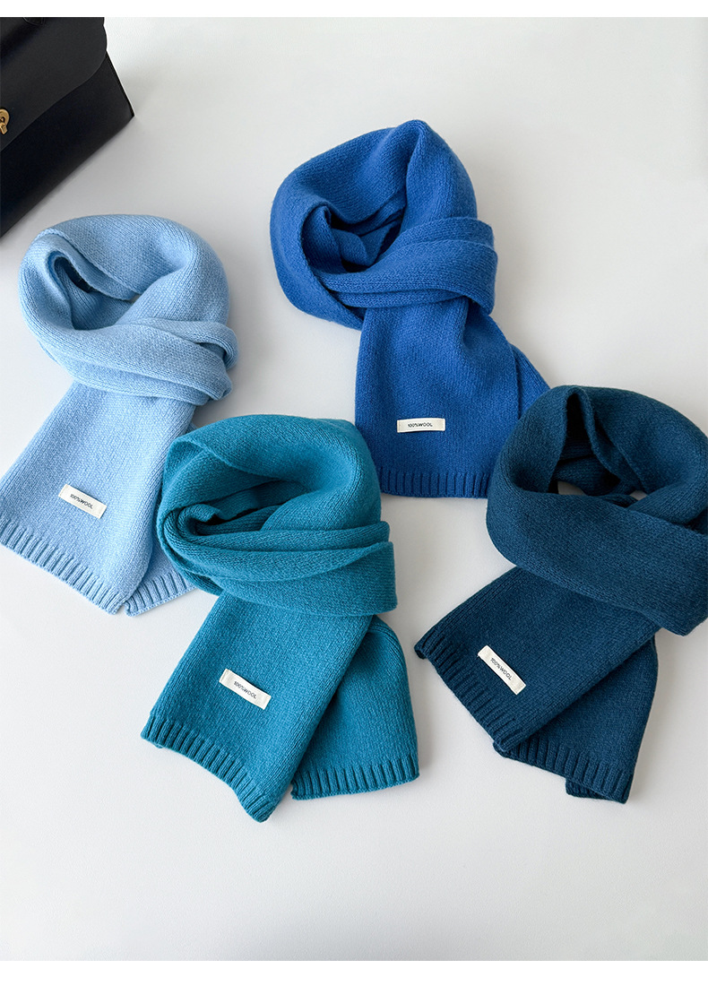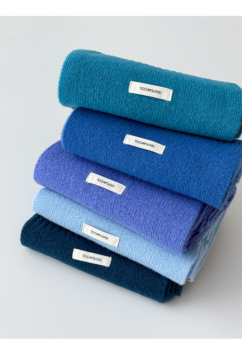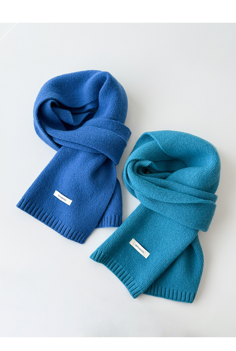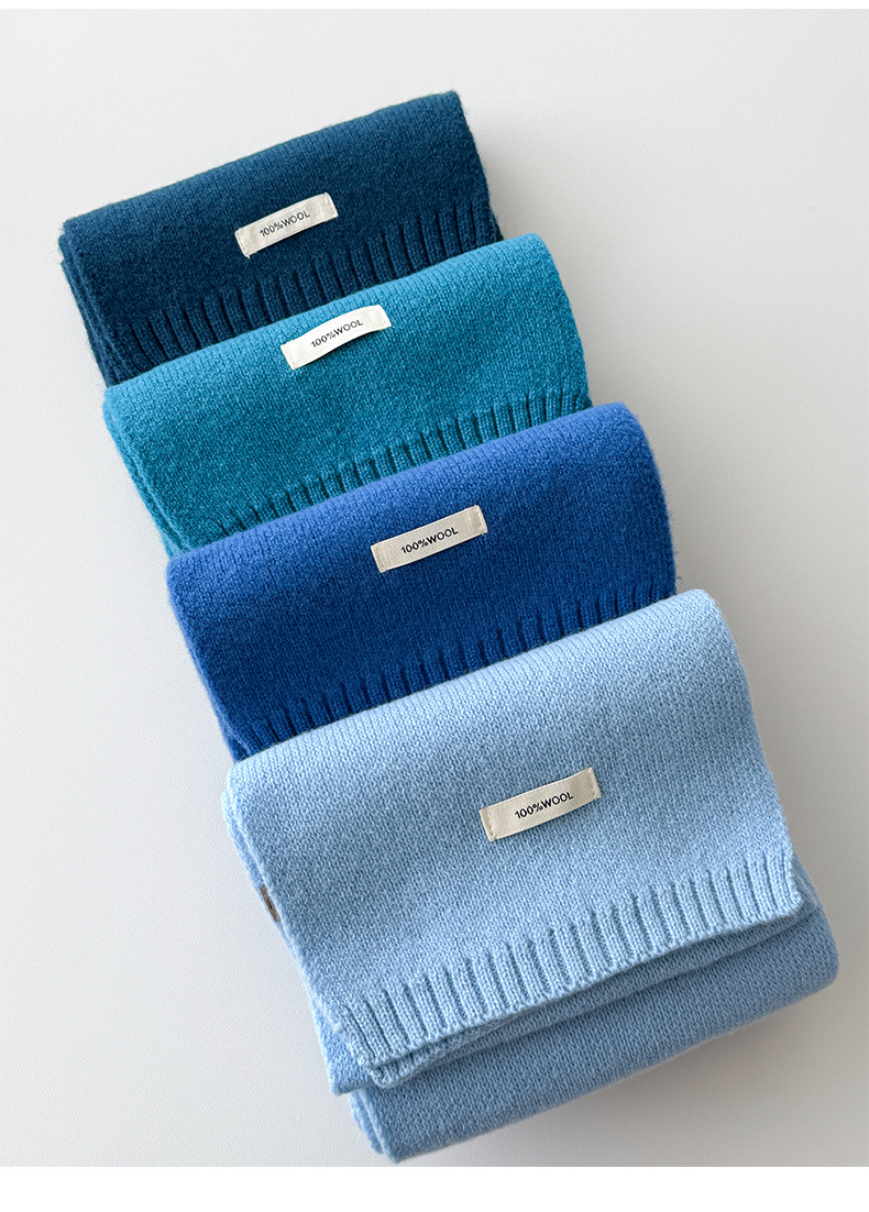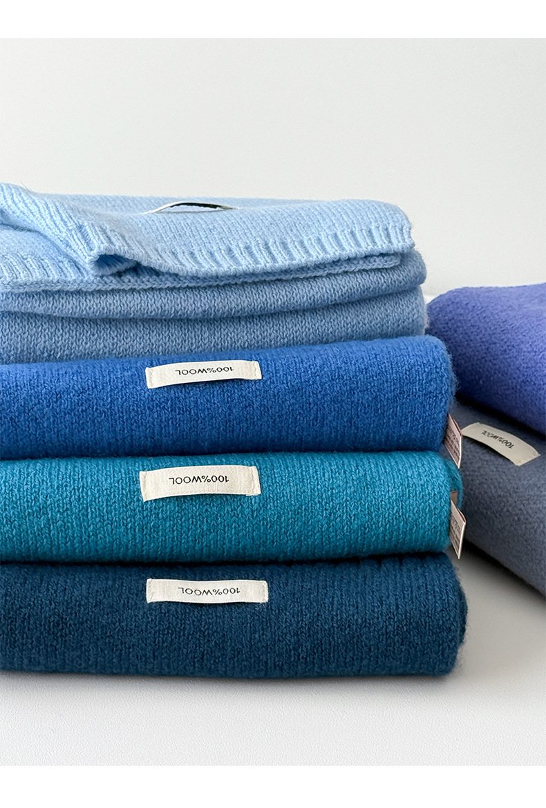 100% 순모 니트 스카프 남녀공용 가을 겨울 다용도 고급스러운 따뜻한 단색 한국 스타일 순모 스카프스토어 가기