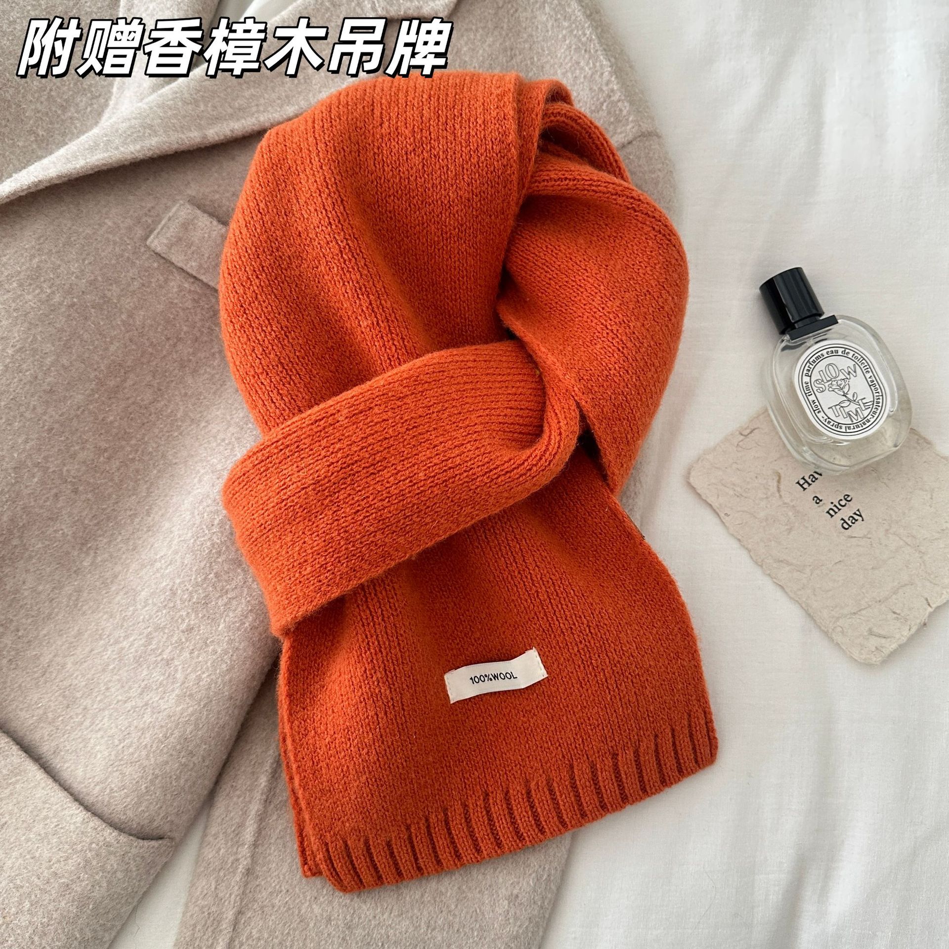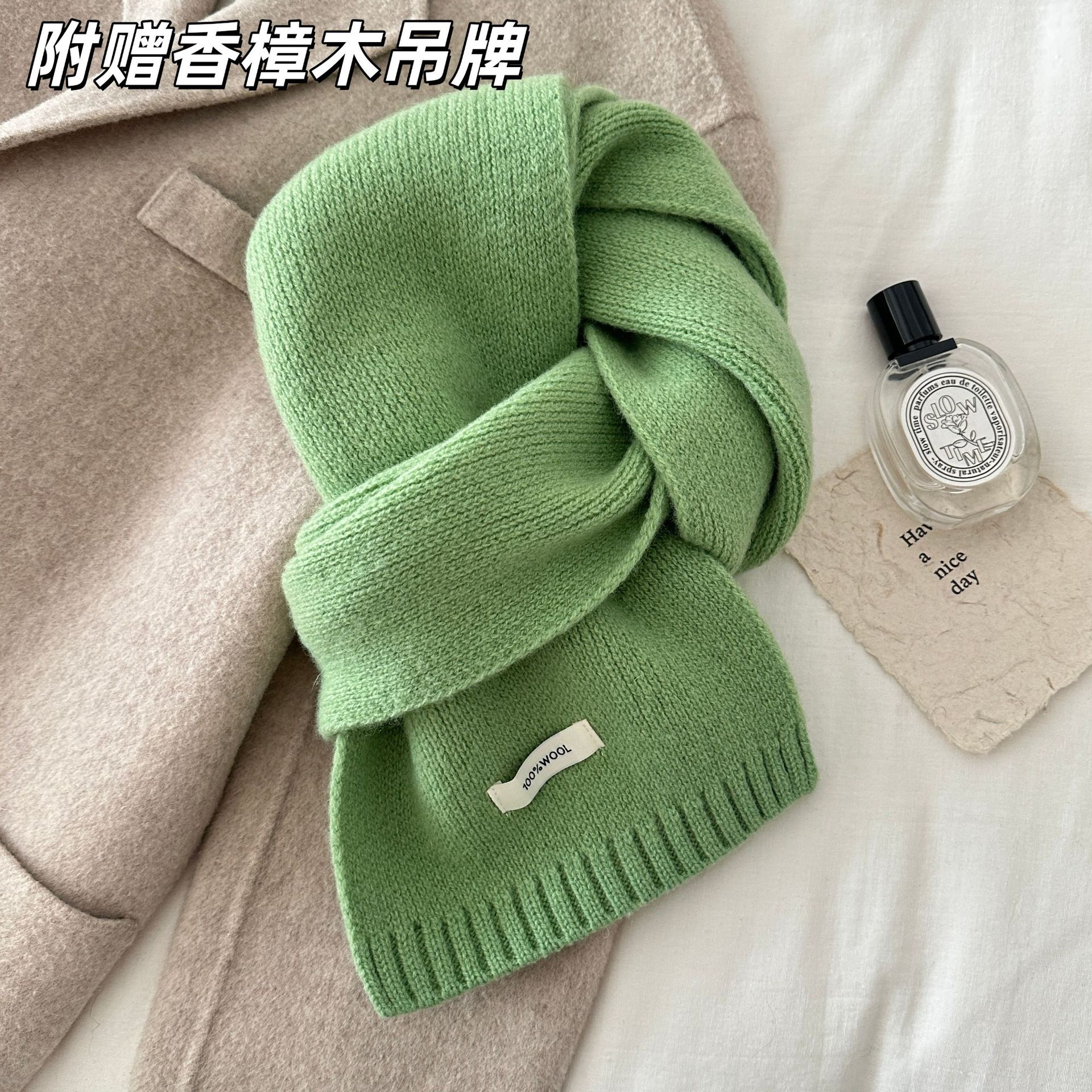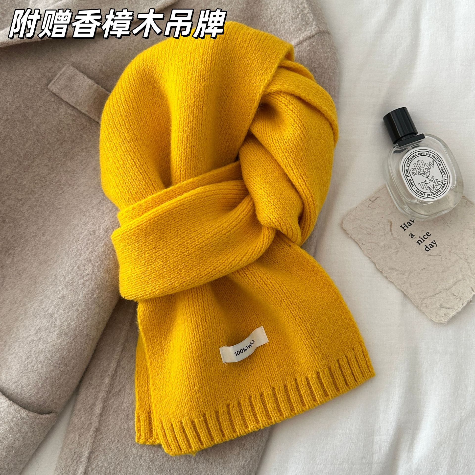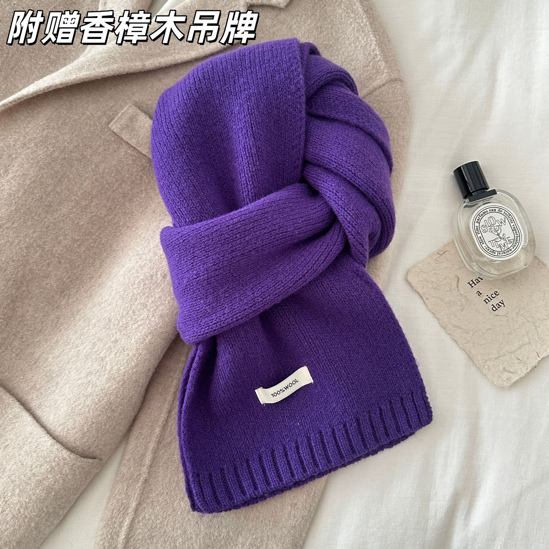 100% 순모 니트 스카프 남녀공용 가을 겨울 다용도 고급스러운 따뜻한 단색 한국 스타일 순모 스카프스토어 가기