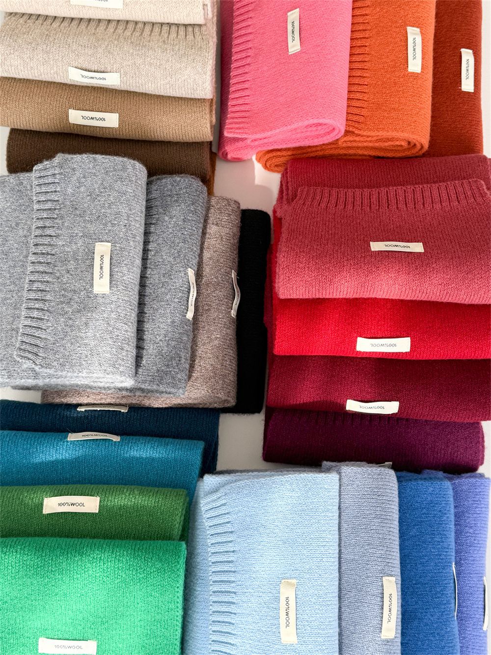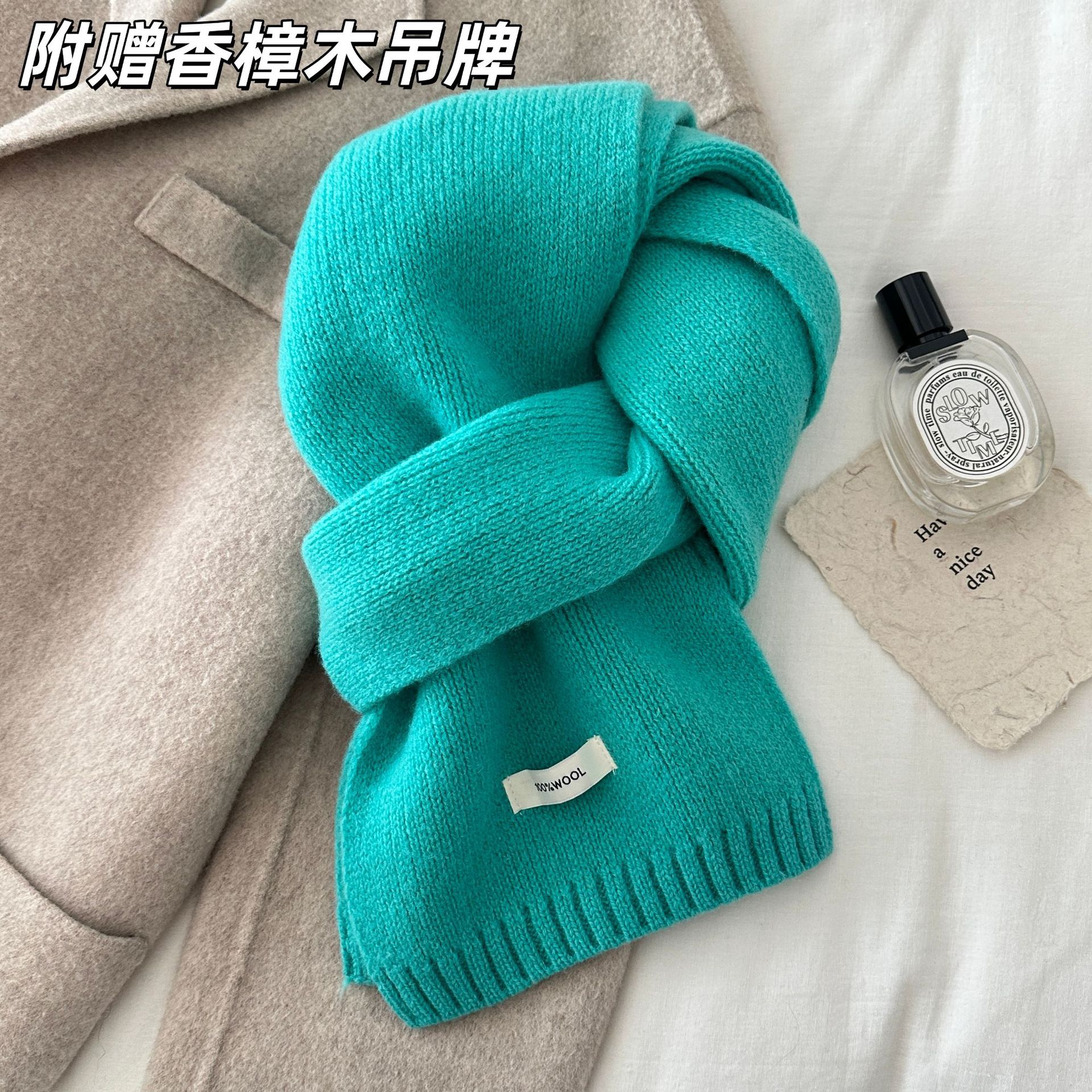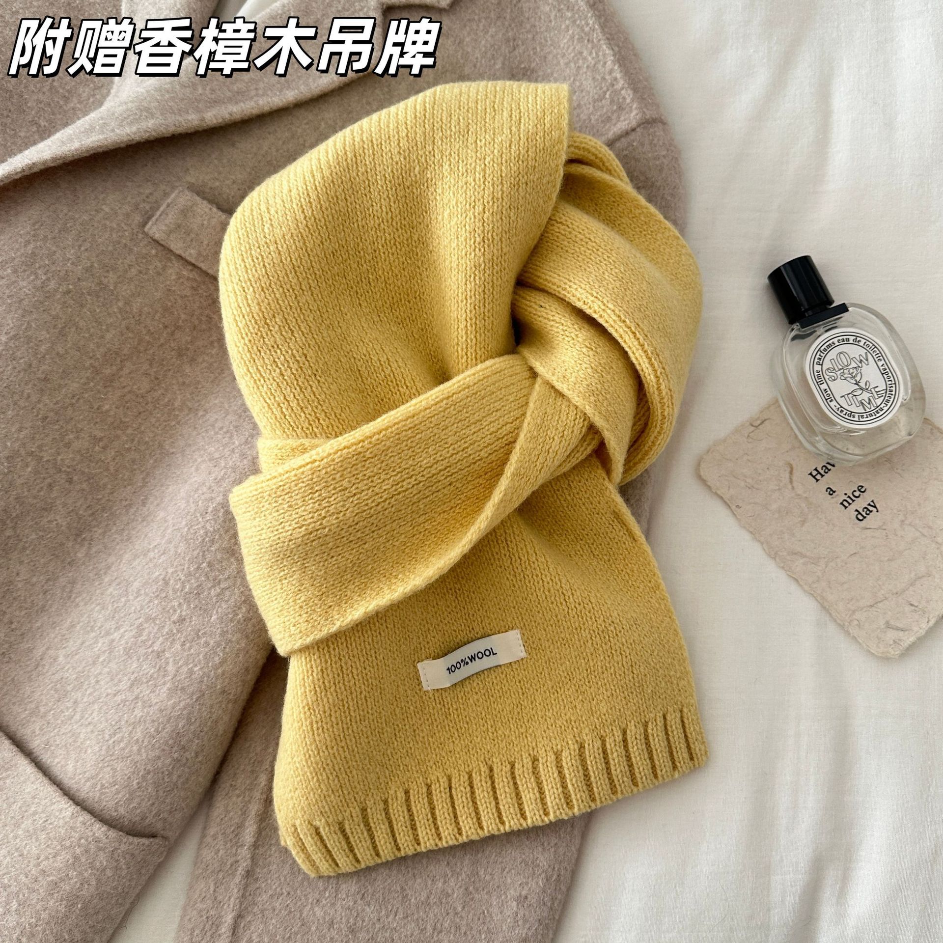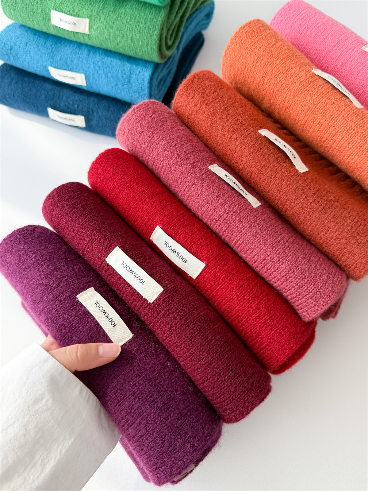 100% 순모 니트 스카프 남녀공용 가을 겨울 다용도 고급스러운 따뜻한 단색 한국 스타일 순모 스카프스토어 가기