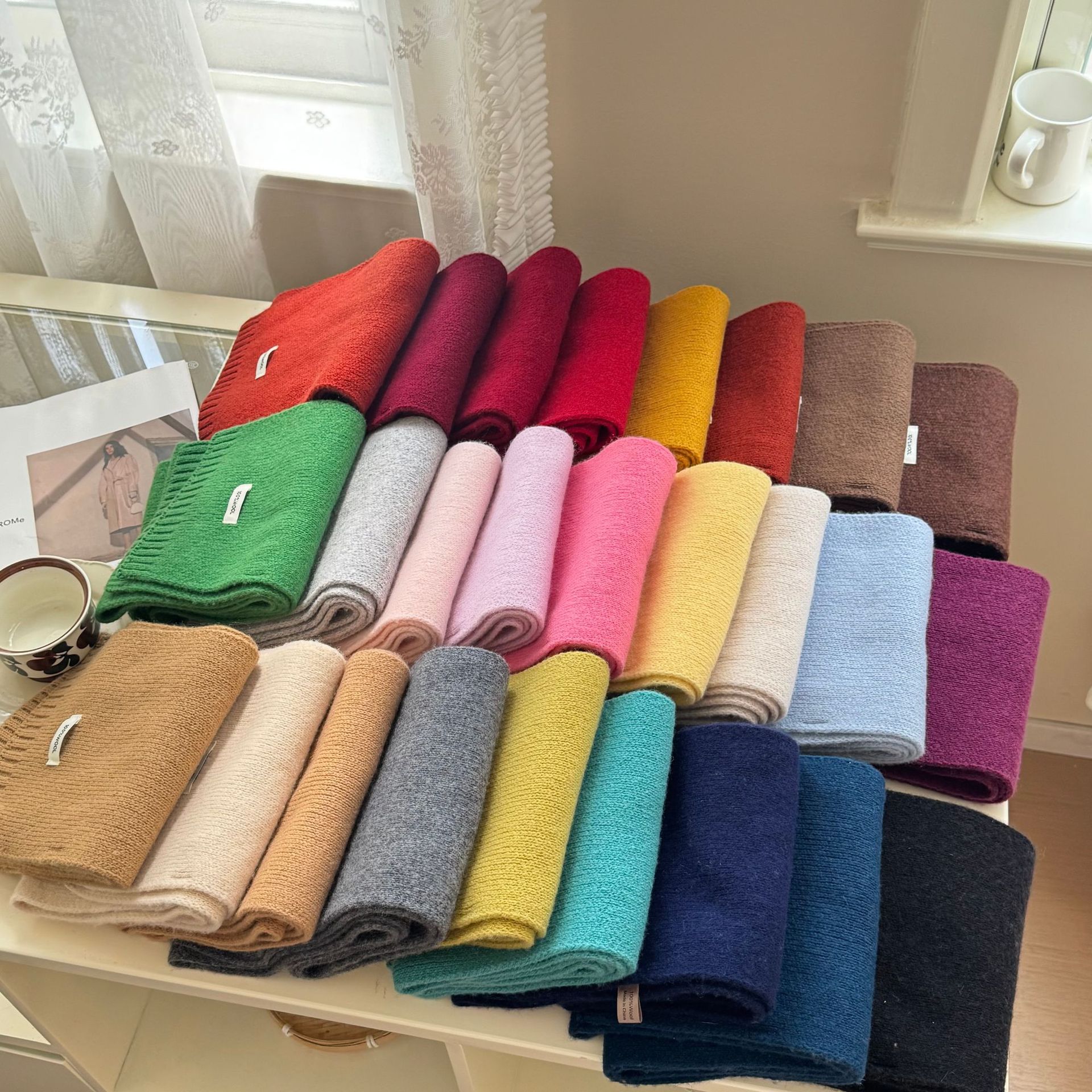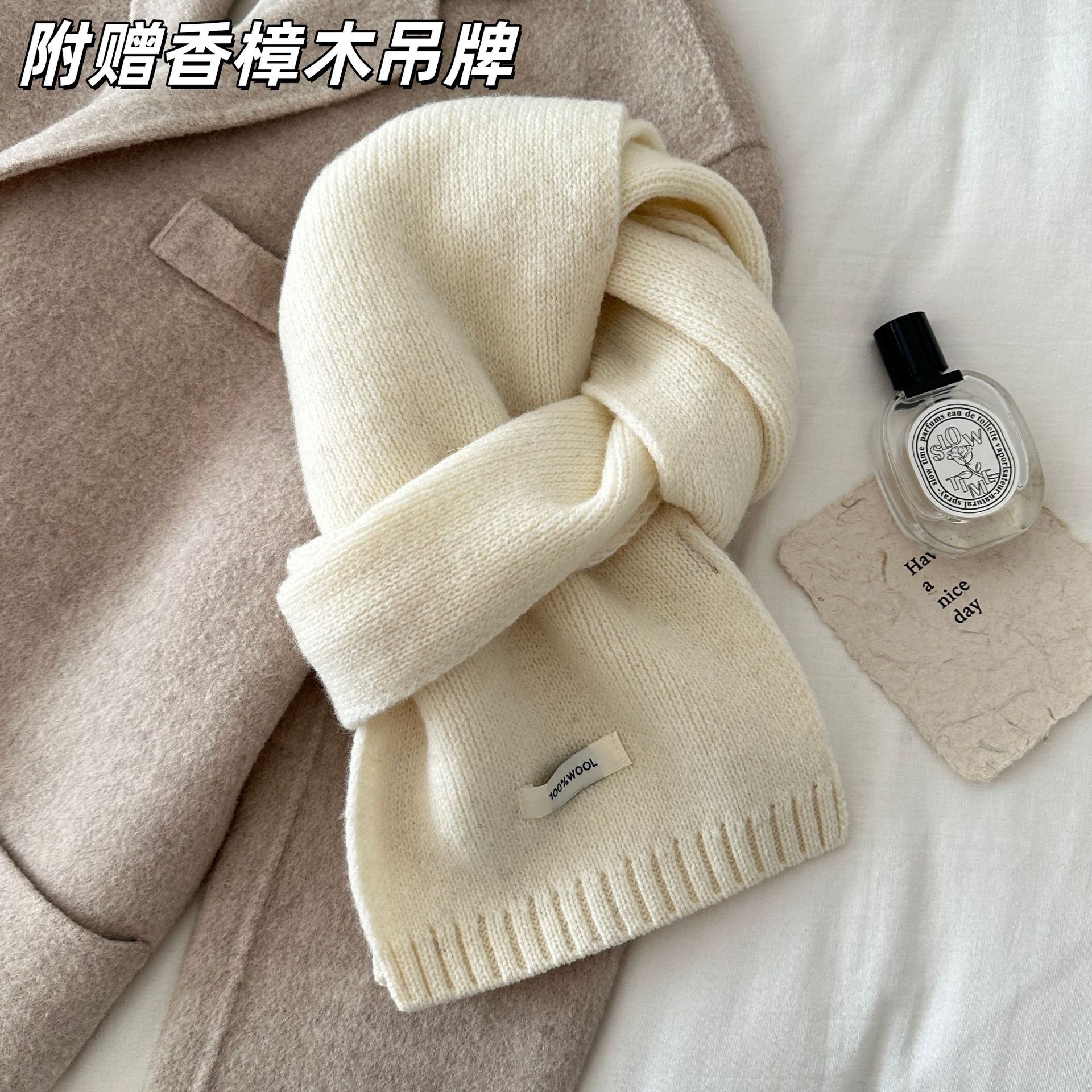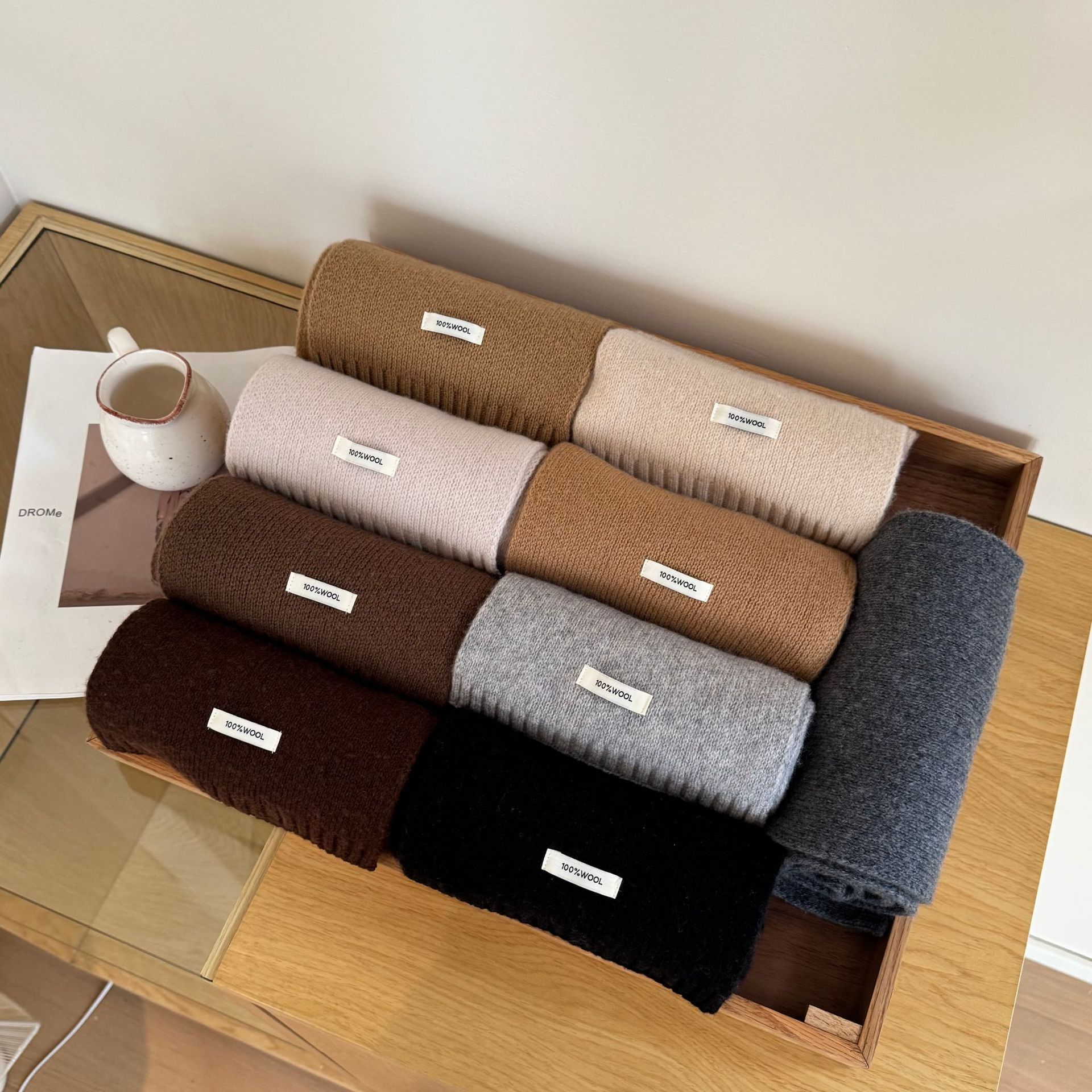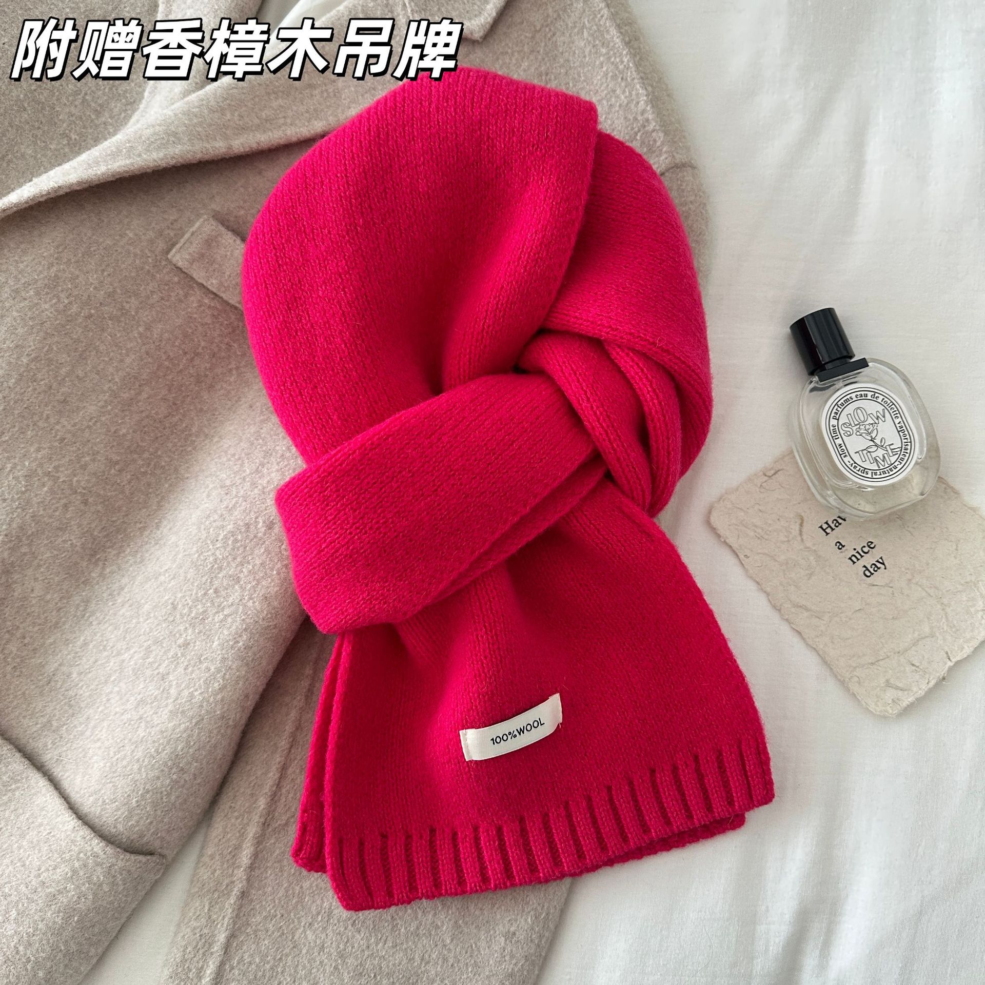 100% 순모 니트 스카프 남녀공용 가을 겨울 다용도 고급스러운 따뜻한 단색 한국 스타일 순모 스카프스토어 가기