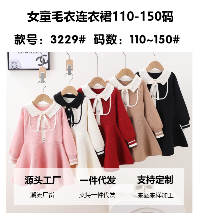 여자 드레스 봄과 가을 2025 새로운 스타일 공주 니트 어린이 아기 스웨터 스커트 아기 빨간색 스커트스토어 가기