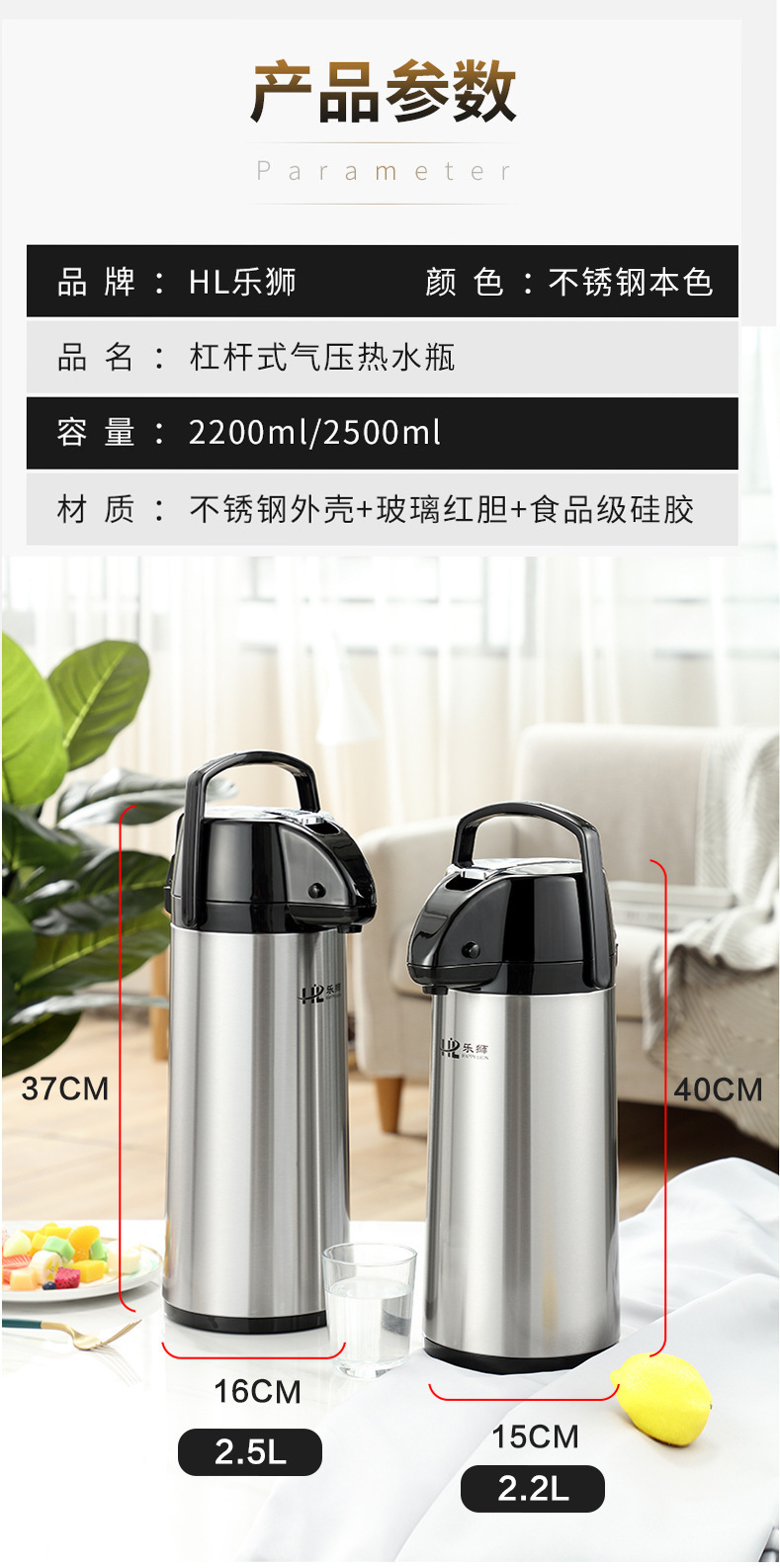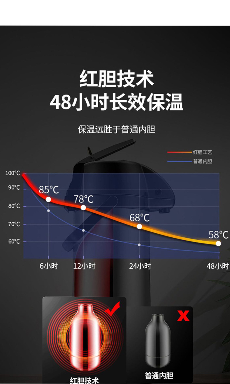 Le Shi 공기압 온수병 가정용 보온병 대용량 보온병 푸시형 병 주전자 병 공기압 병스토어 가기