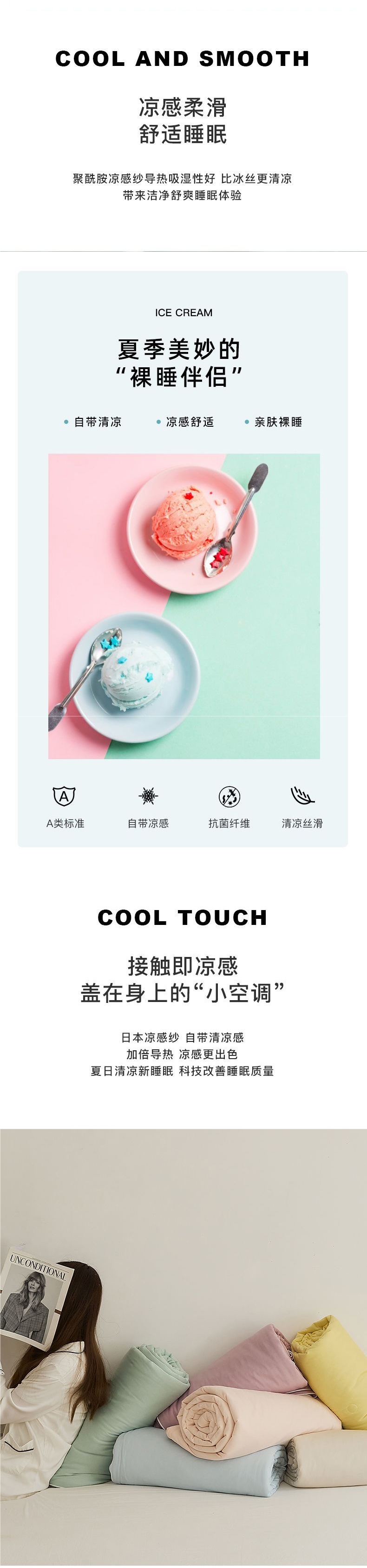 클래스 A 엄마와 아기 등급 쿨 아이스크림 에어컨 이불 쿨 아이스 실크 여름 쿨링 기계 세탁 가능 여름 얇은 더블