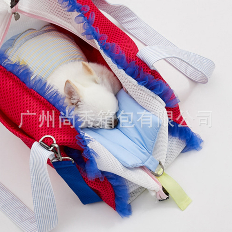 Little Red의 인기 판매 강아지 대비 색상 통기성 애완 동물 가방 경량 한국어 버전 메쉬 외출 새끼 고양이 운송 여행 핸드백
