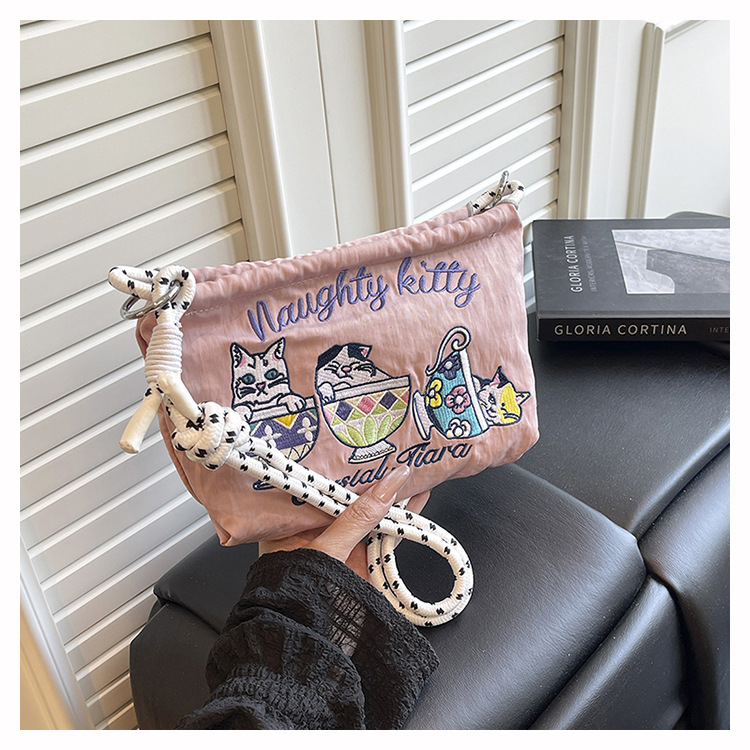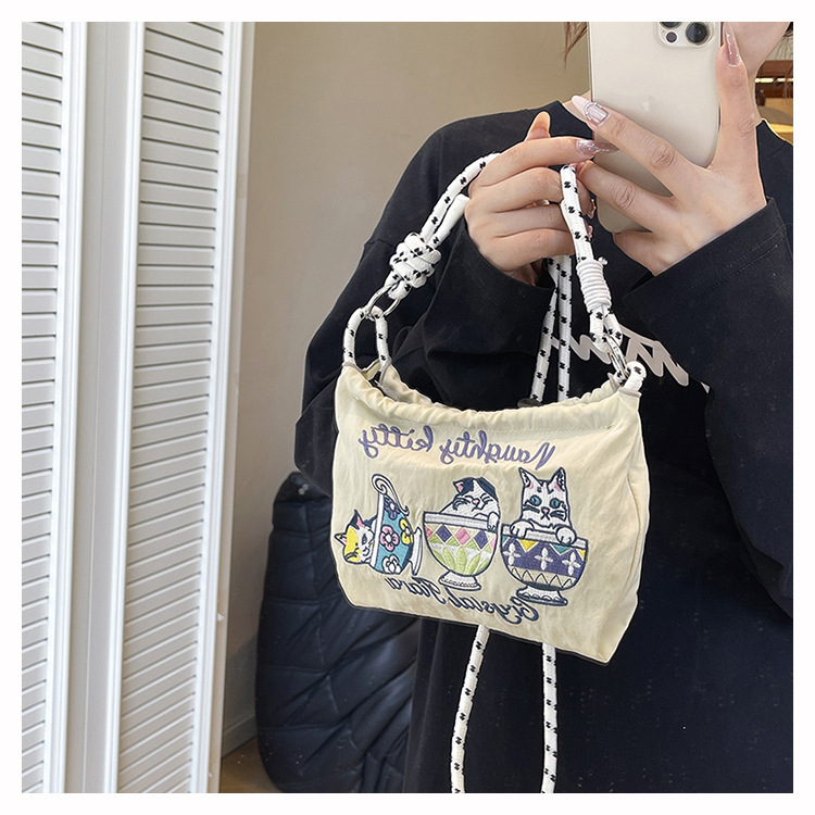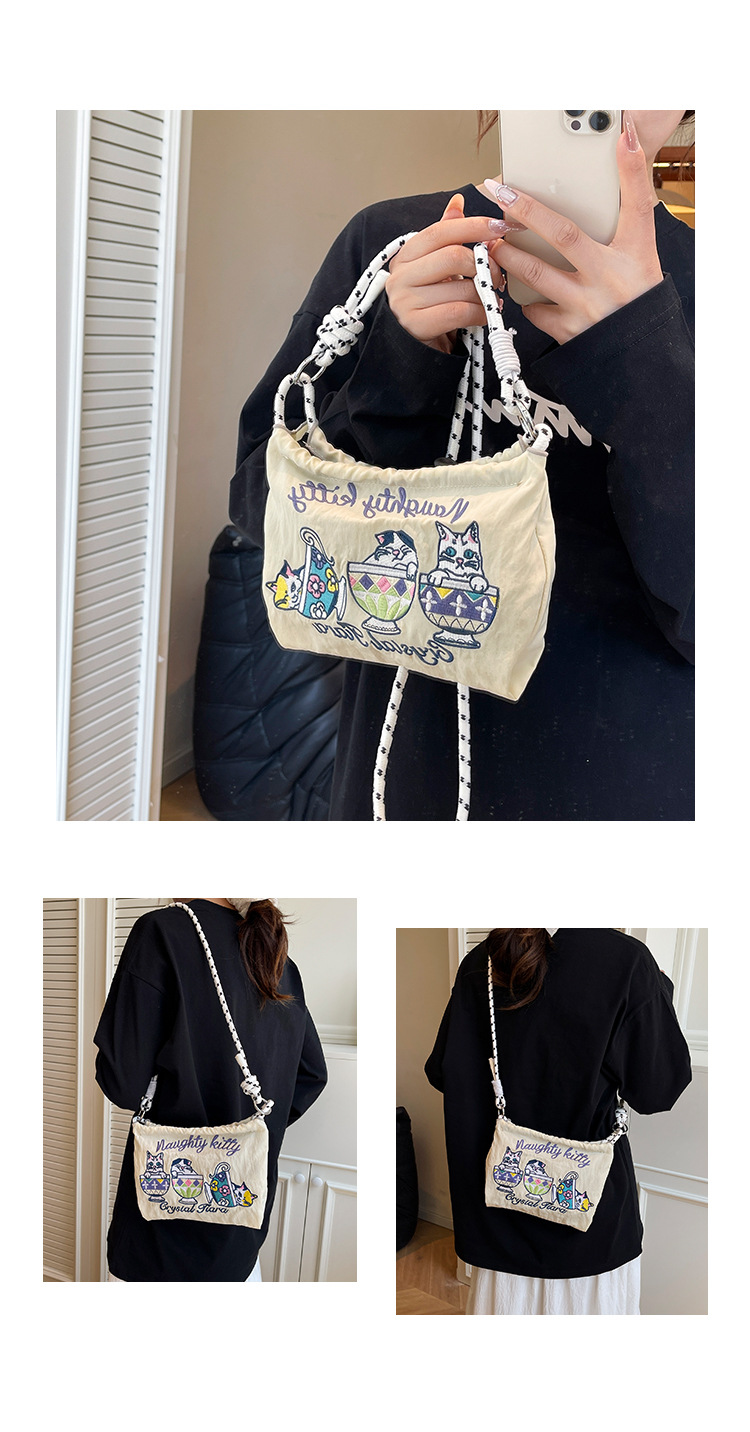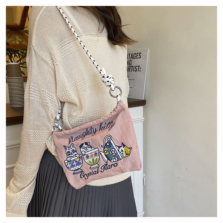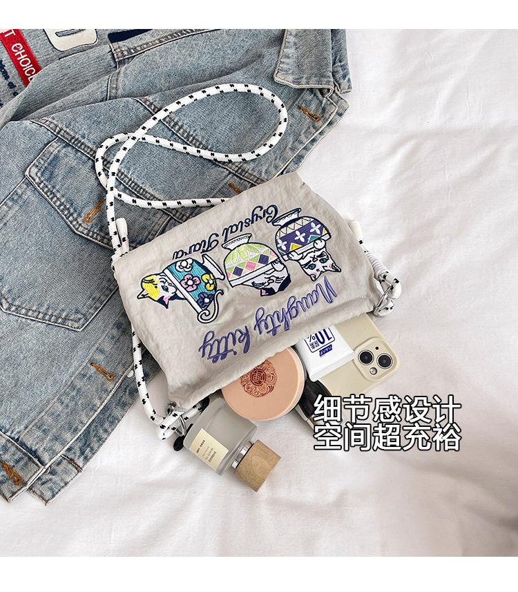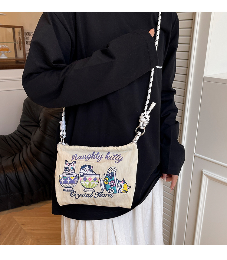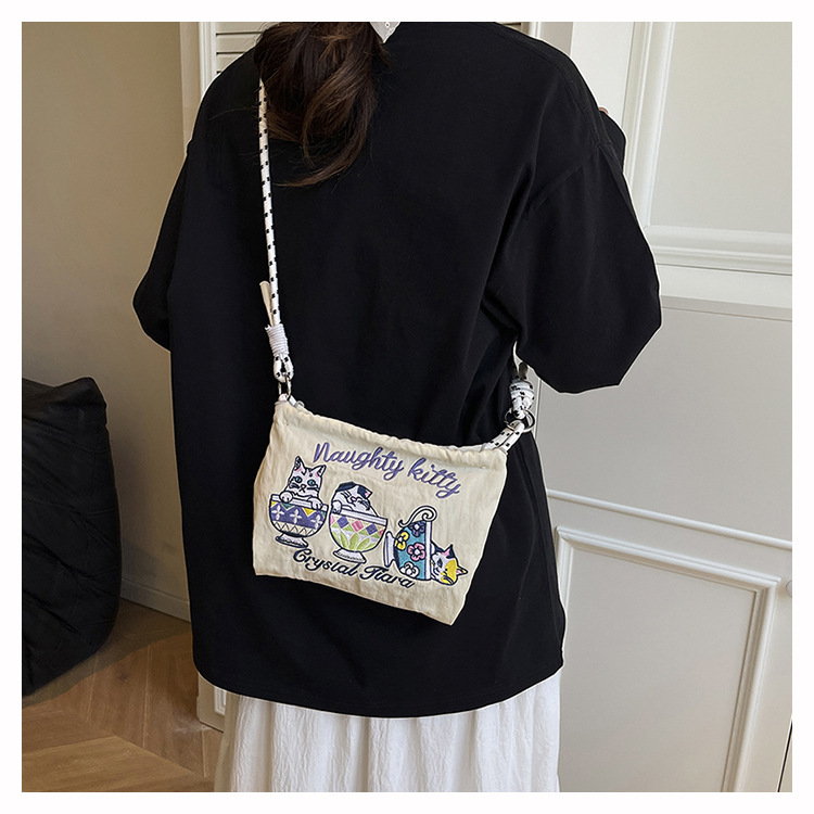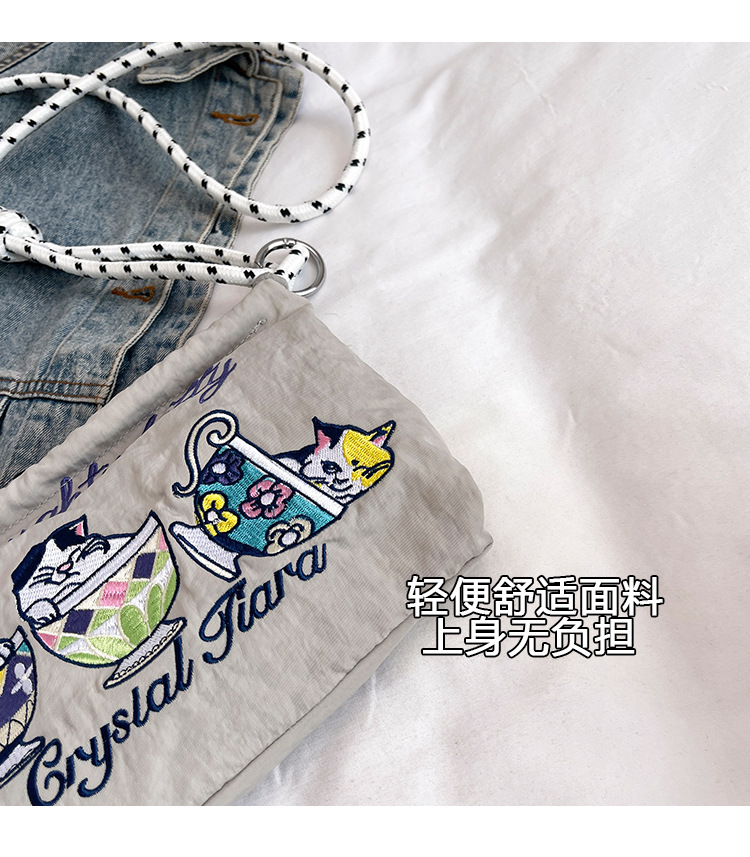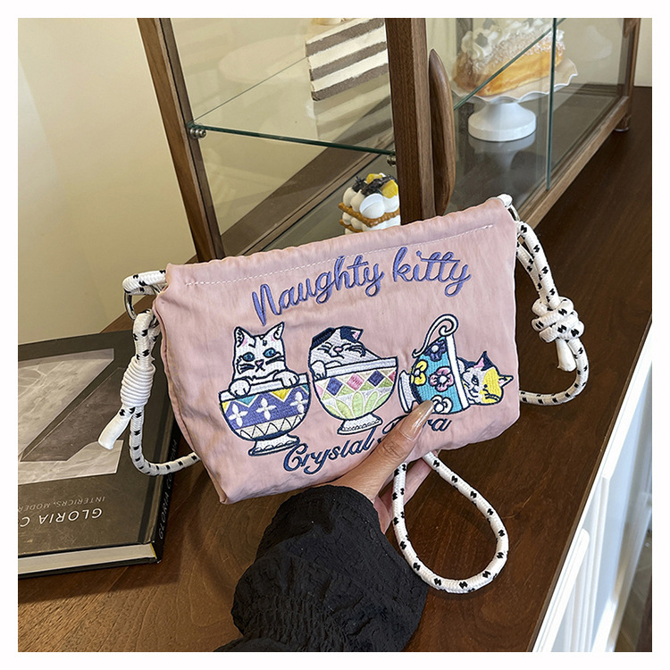 Ballchain 일본 여름 티 컵 고양이 크로스 바디 여성용 가방 2025 국경 간 대외 무역 자수 나일론 천 숄더 백스토어 가기
