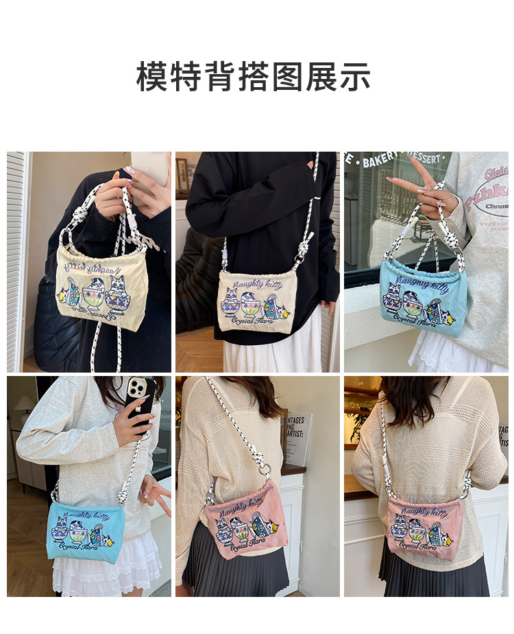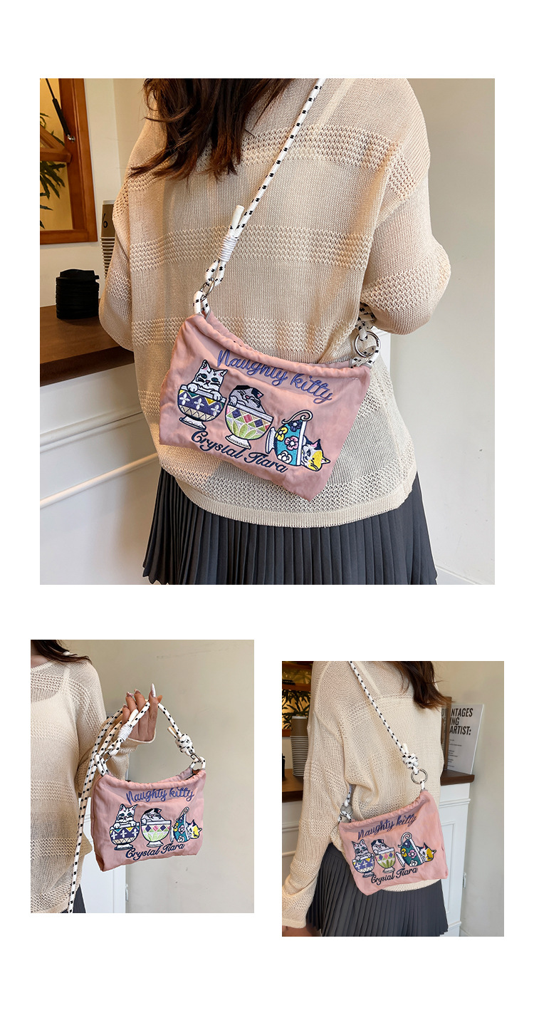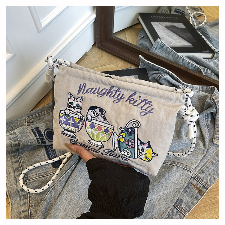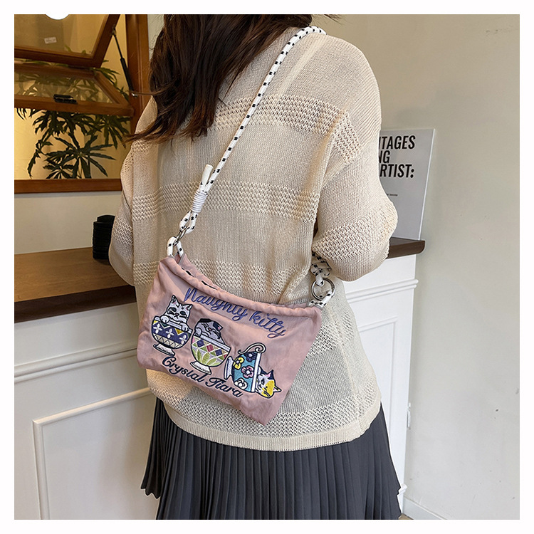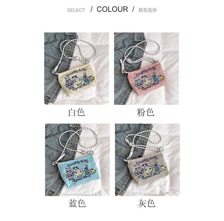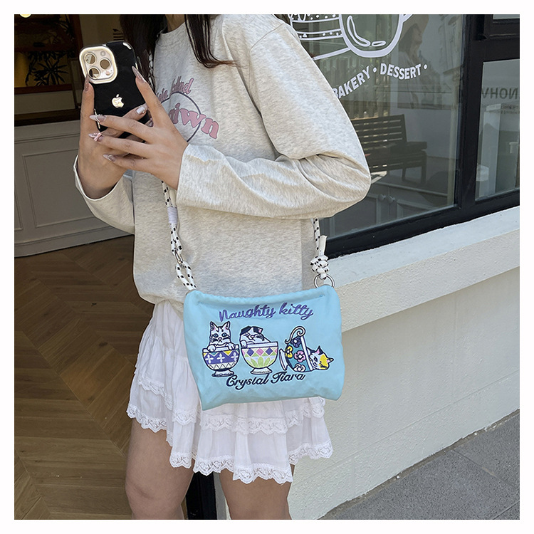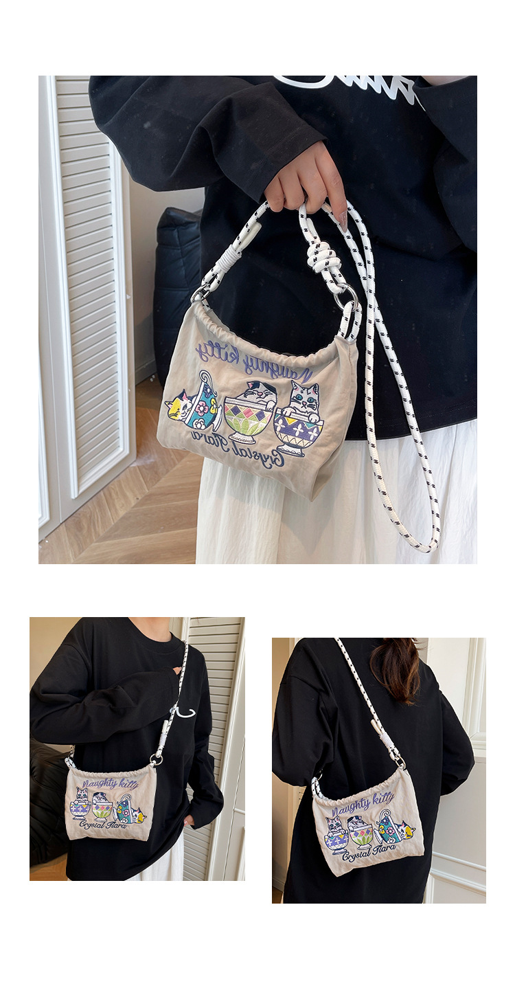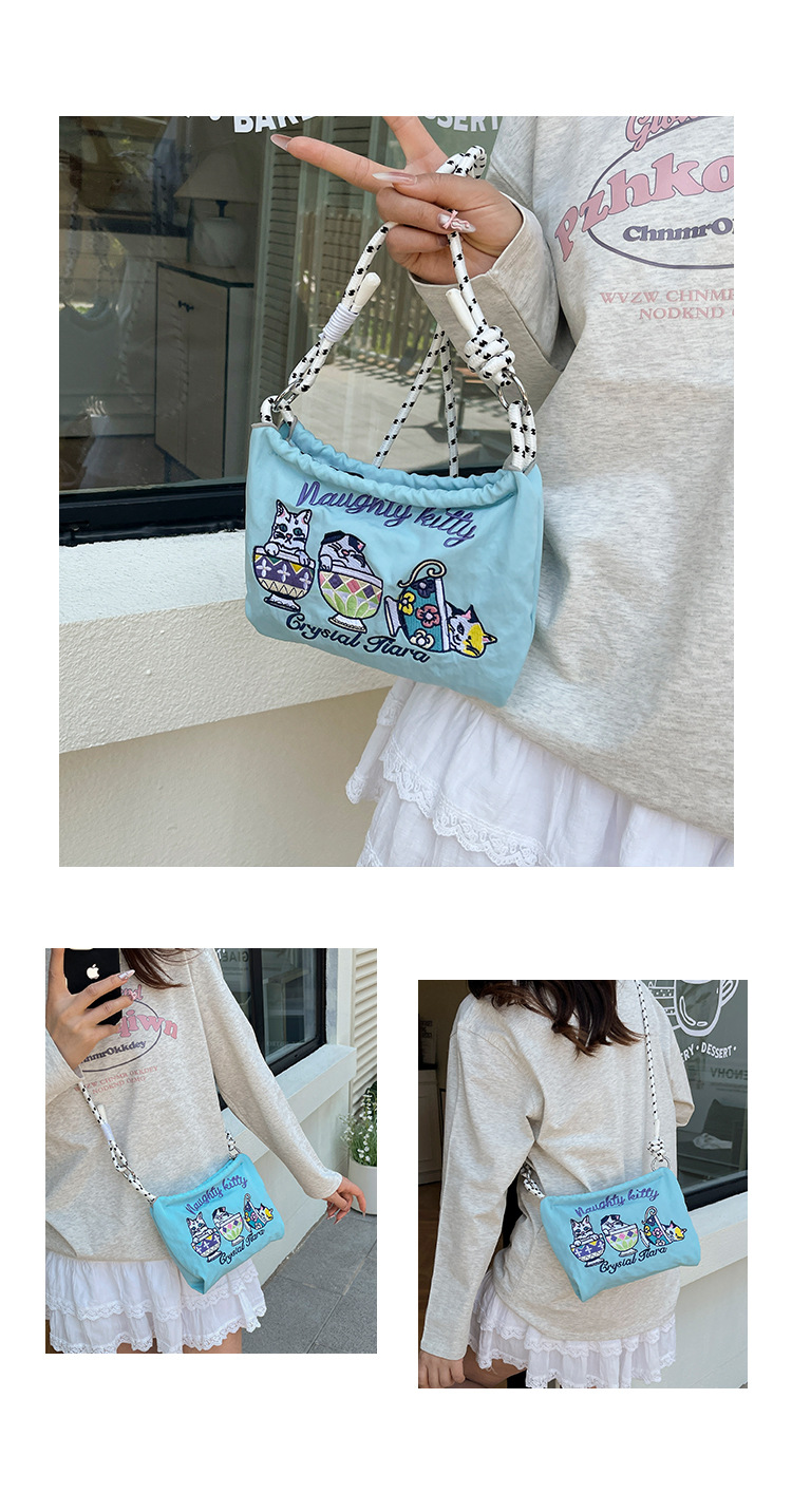 Ballchain 일본 여름 티 컵 고양이 크로스 바디 여성용 가방 2025 국경 간 대외 무역 자수 나일론 천 숄더 백스토어 가기