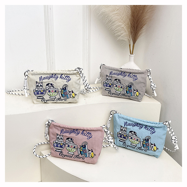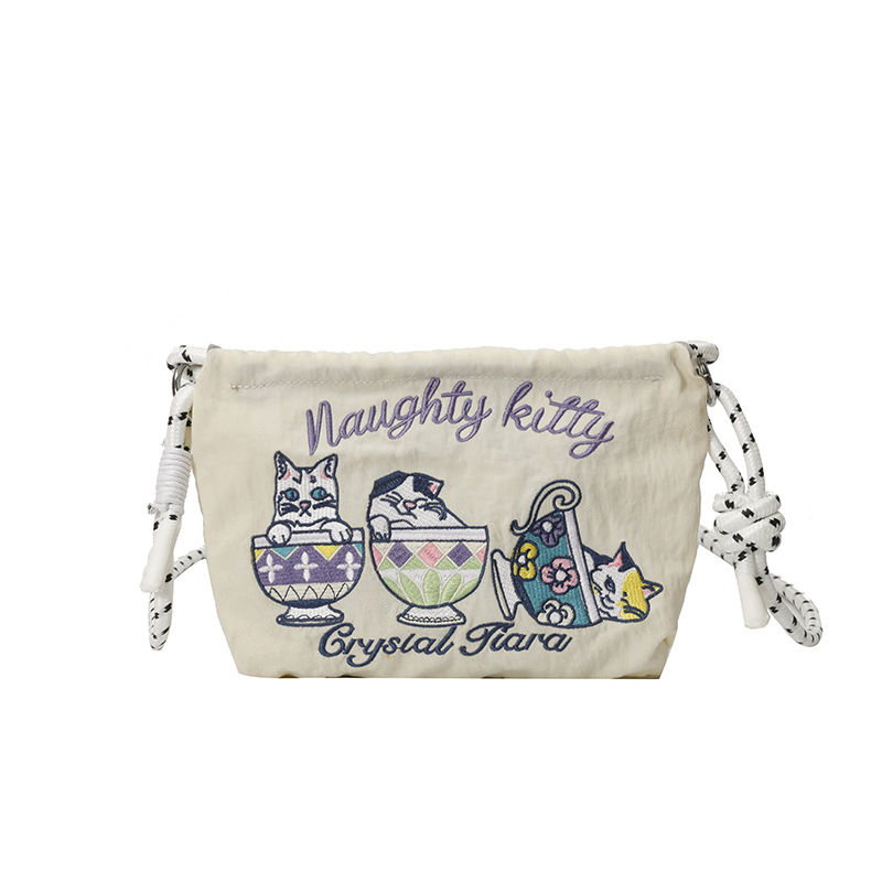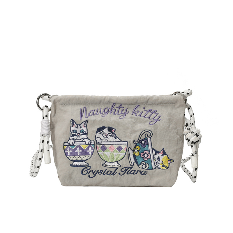 Ballchain 일본 여름 티 컵 고양이 크로스 바디 여성용 가방 2025 국경 간 대외 무역 자수 나일론 천 숄더 백