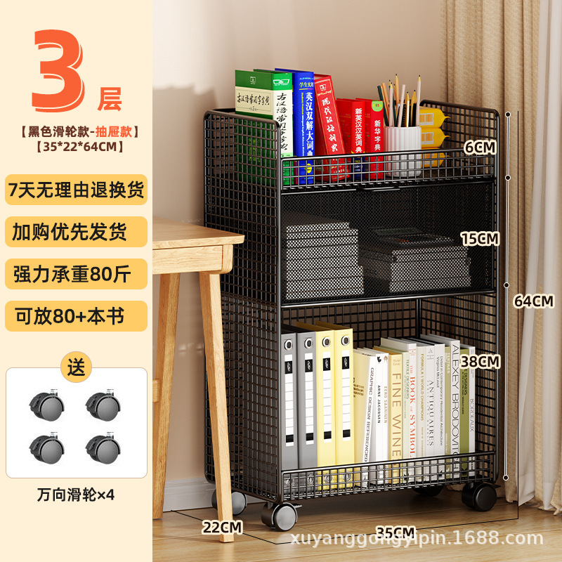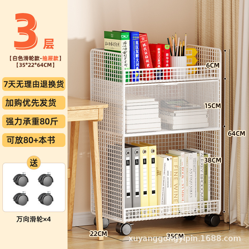 기숙사 책상 책장 이동식 수납 선반 바닥 그림책 테이블 바퀴 달린 책상 카트 수납 선반 옆