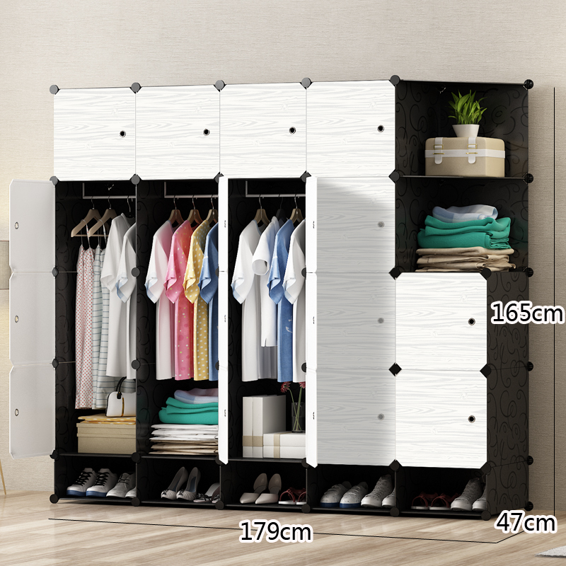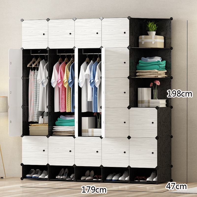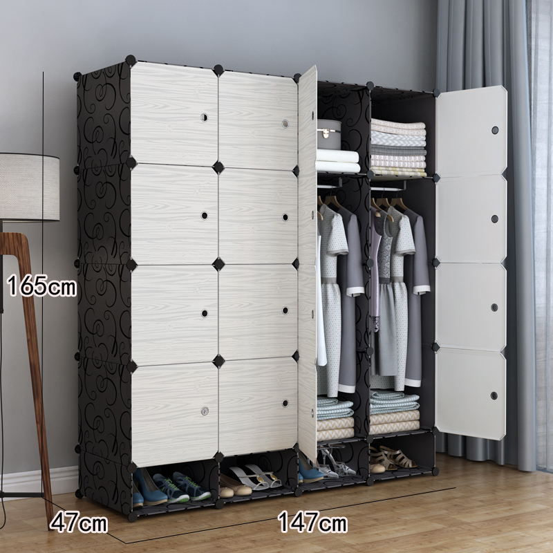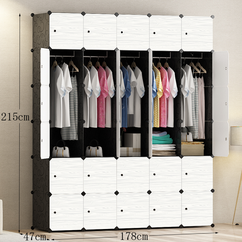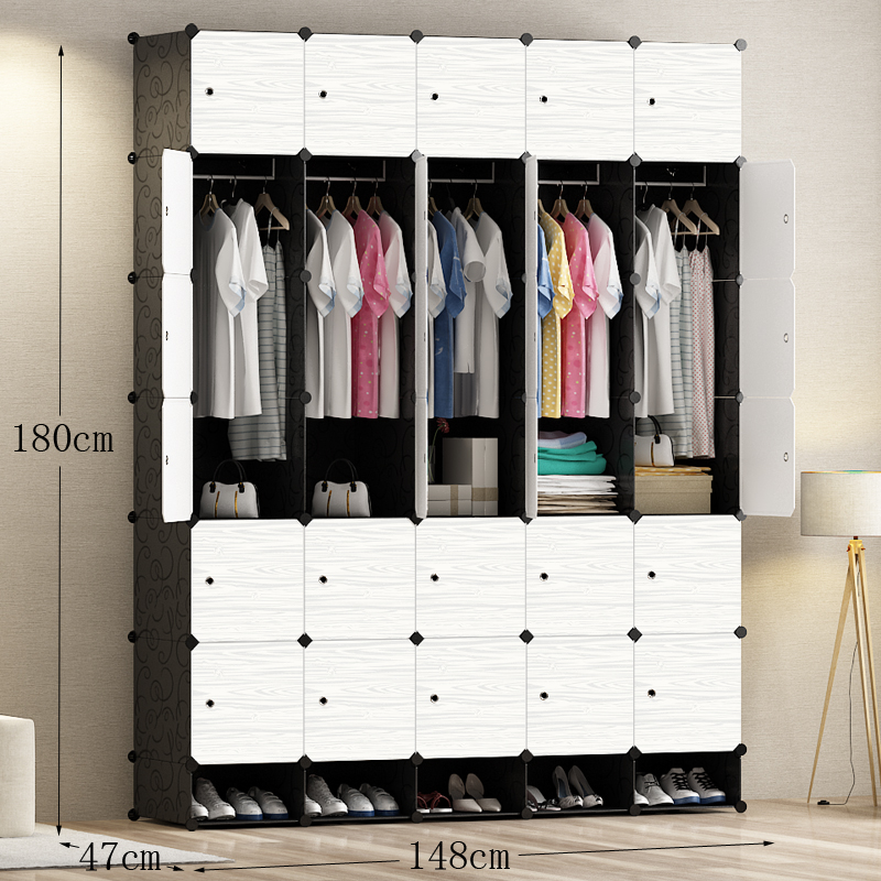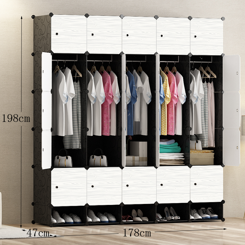 간단한 옷장 조립 단단한 나뭇결 옷장 조합 저장 플라스틱 패브릭 강철 프레임 저장 간단한 현대 경제적