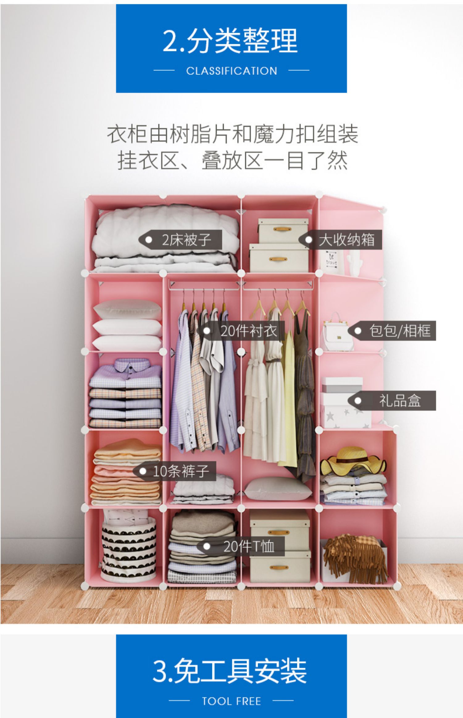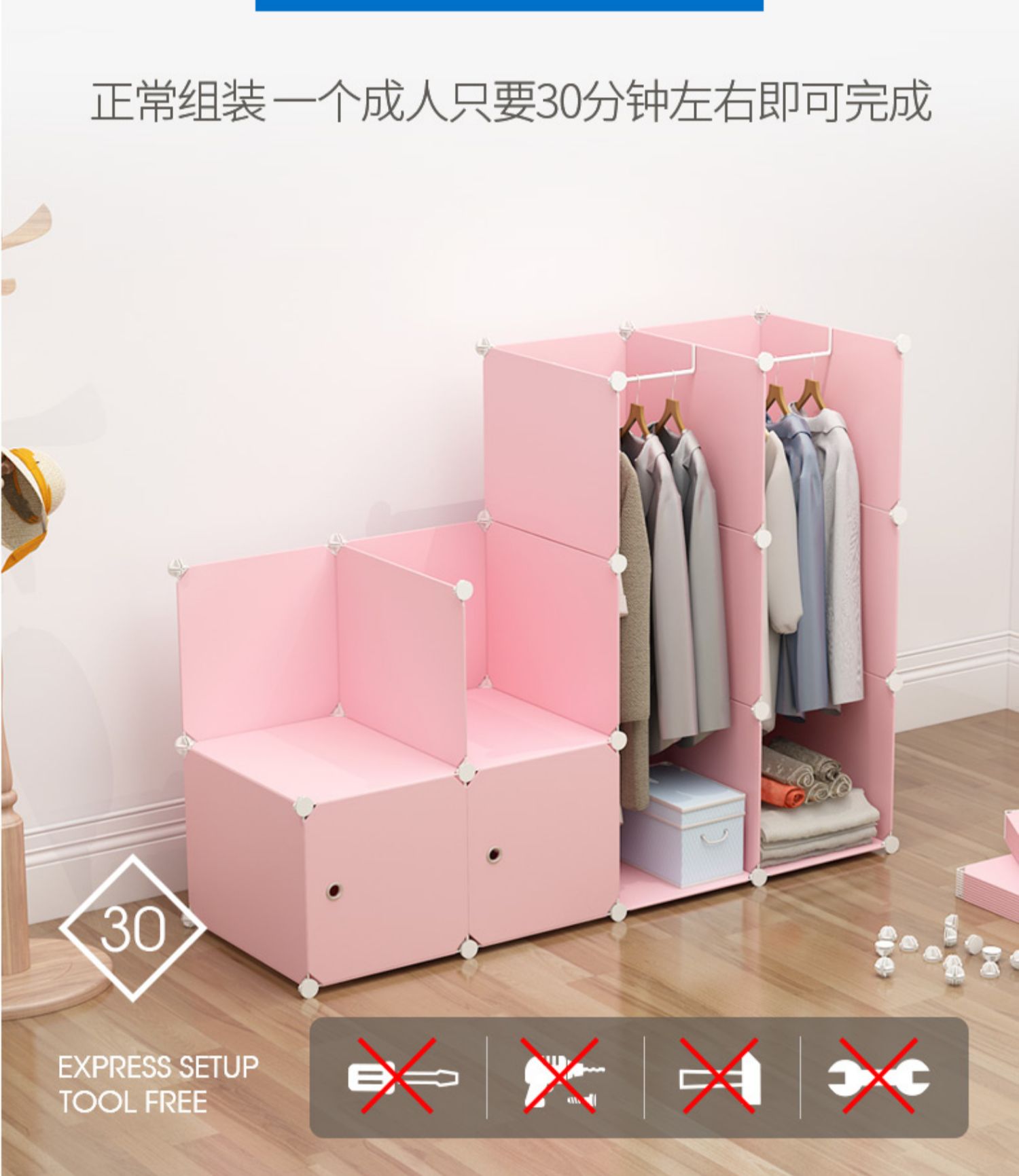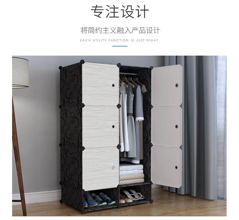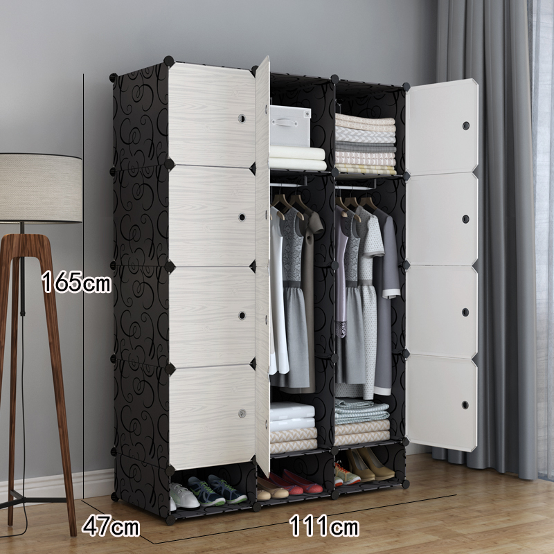 간단한 옷장 조립 단단한 나뭇결 옷장 조합 저장 플라스틱 패브릭 강철 프레임 저장 간단한 현대 경제적